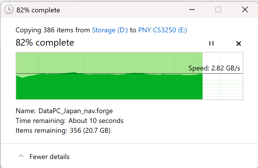 The drive to drive copy you're seeing is from a Gen4 to a Gen5 drive as my board only has a single Gen5 slot. As a result, it's throttled to the maximum speed of the source, as you'd expect. This is probably the best time to talk about why this isn't showing 14 gigs per second, and when you could potentially see that speed.