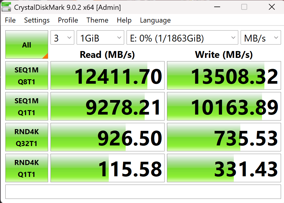 The test platform I use in the lab is current – a GIGABYTE Z890 AORUS Master with an Intel 285K and an RTX 5090, coupled with V-Color DDR5 Manta XFinity 48GB (24GBx2) 8800MHz CUDIMM – more than enough to handle anything current and likely well into the future. Despite that, when I connected up the CS3150, I was shocked at the benchmarks.