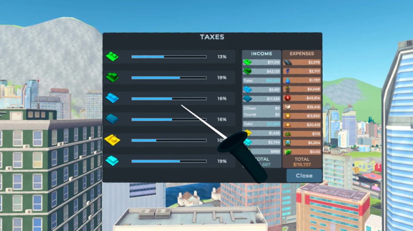 There’s a challenge in adapting complex games to the simple controls of VR. Some games do it well, and some fall on their face. I’m glad to say that Cities: VR does a decent job of translating the myriad functions of the game to the controllers of the Quest 2. It does mean that many things are buried in layers of menus, but after a short adjustment period, you’ll be zipping around and laying down new commercial districts in no time.