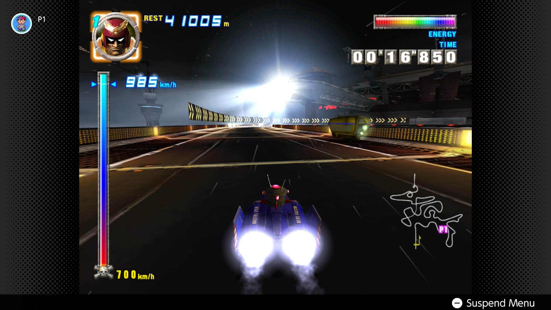 Chapter 5 of Story Mode is the easiest point of comparison: this frantic one-minute time squeezes Captain Falcon in a self-destructing tunnel, wherein his Blue Falcon must expertly worm through every crevice to escape. It’s no cakewalk in either version, yet the differences were immediate: whereas I smoothly glided through most every crevice on GameCube, my machine kept sliding every which way, skidding outside my intended directions and slamming poor Falcon into each closing gate, sealing his fate again and again.