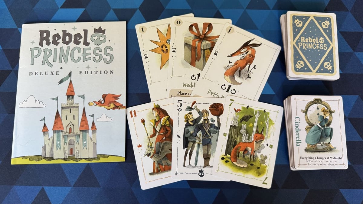 Rebel Princess innovates on the classic game of Hearts to create a game that is faster and lighter with constant surprises. What it adds in wacky randomness, it loses in strategy and planning from the classic game. It’s a great time if you aren’t too serious about your trick-takers.