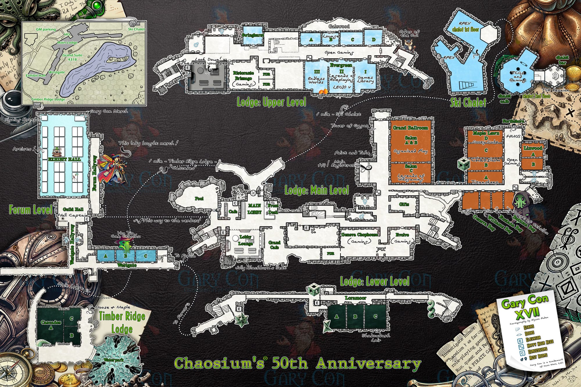 Few towns this size have a place to host an event like this. That Lake Geneva has the perfect facility for such a convention almost feels like fate. The Grand Geneva Resort is a sprawling, almost maze-like complex of connected buildings done in Frank Lloyd Wright’s prairie style. It has rooms in unexpected places and stairs that aren’t traditionally symmetrical. You can start on the ground floor heading to another section, go down multiple flights of stairs or ramps, and somehow still be on the ground floor. The result is a place that doesn’t feel too far off from something Gary himself might have sent players through, and based on the official map for the convention, they know it.
