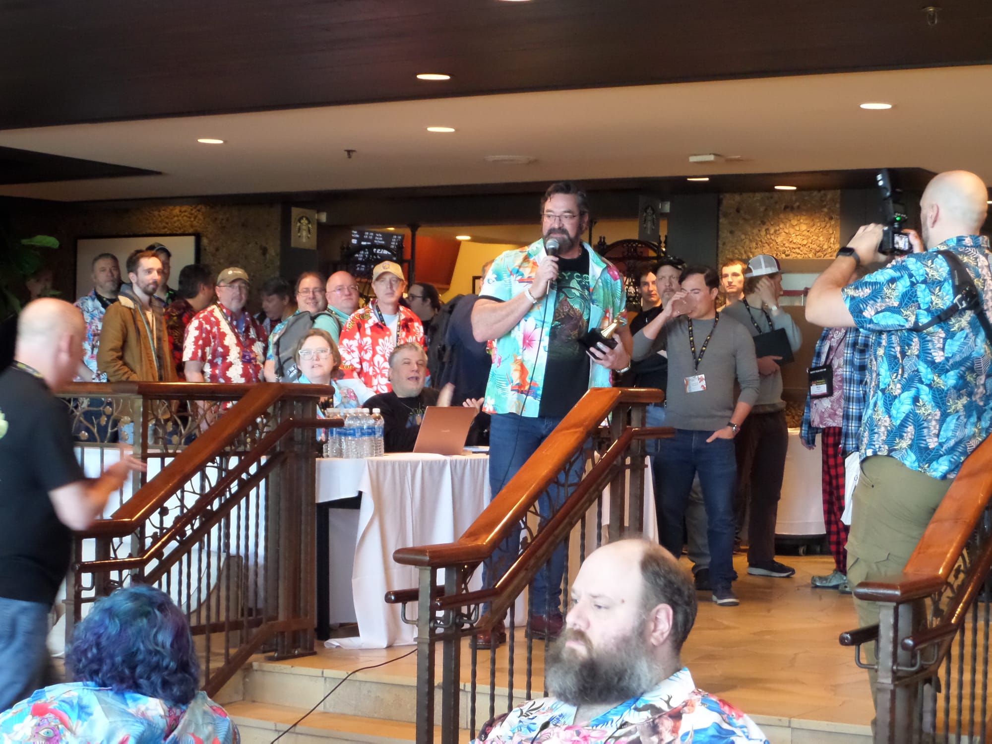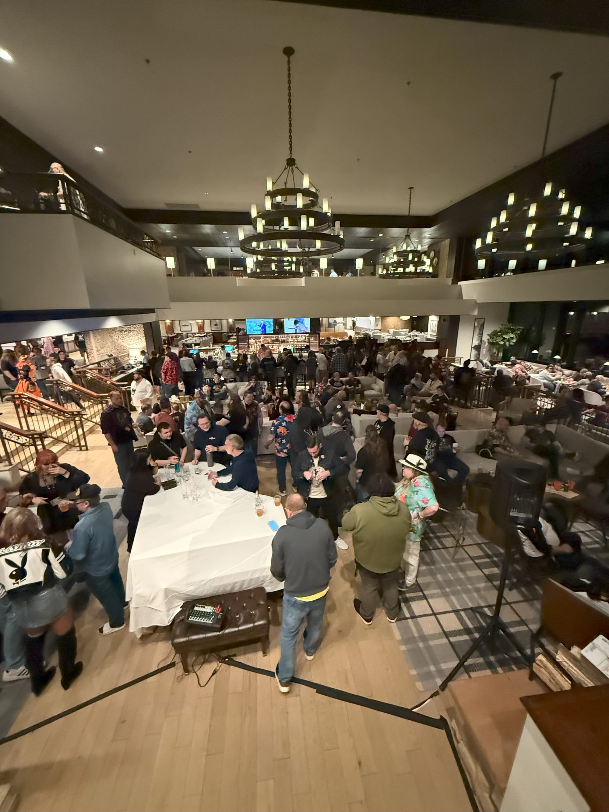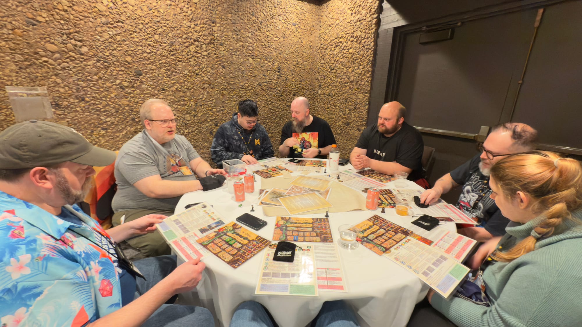 This “living room” is the heartbeat of the convention. With a bar in the lounge and a coffee shop and cafe in the immediate area, almost everyone ends up there several times a day. This is particularly true later in the evenings, when the official events are mostly over and people are wondering what to do next. The overall space can hold several hundred people without too much crowding, and everyone is packing fresh tales from their day of gaming. As something of a social butterfly, I was often in the lounge area late into the night.