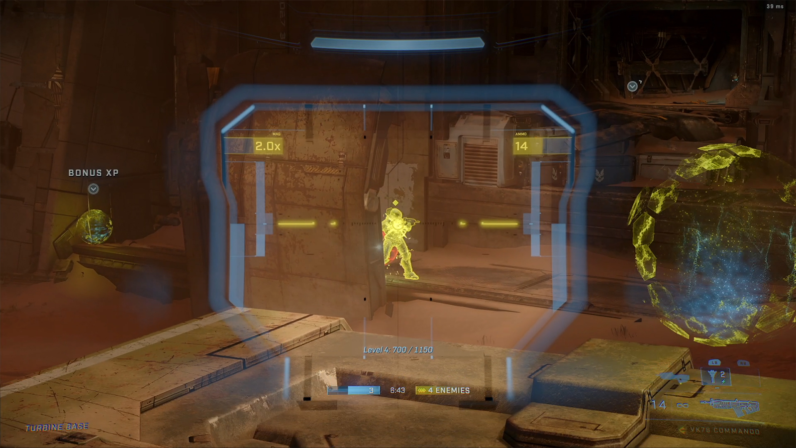 Another way you can upgrade weapons besides killing someone is picking up bonus XP orbs that appear after a Spartan loses their six lives. When you pick up bonus XP, you’re awarded points towards earning a new gun, but the downside is most people camp in the areas the orbs are located, and it takes significant time to collect the XP. It feels like it’s supposed to mimic how battle royale’s let you loot dead bodies, but the risk isn’t worth the reward because it’s not necessary to advance your loadout past an AR and Mangler to do serious damage. I’m not saying the Commando, Bulldog and BR75 are useless, but you can win without making full upgrades, especially since the space closes in on you, forcing even more CQC.