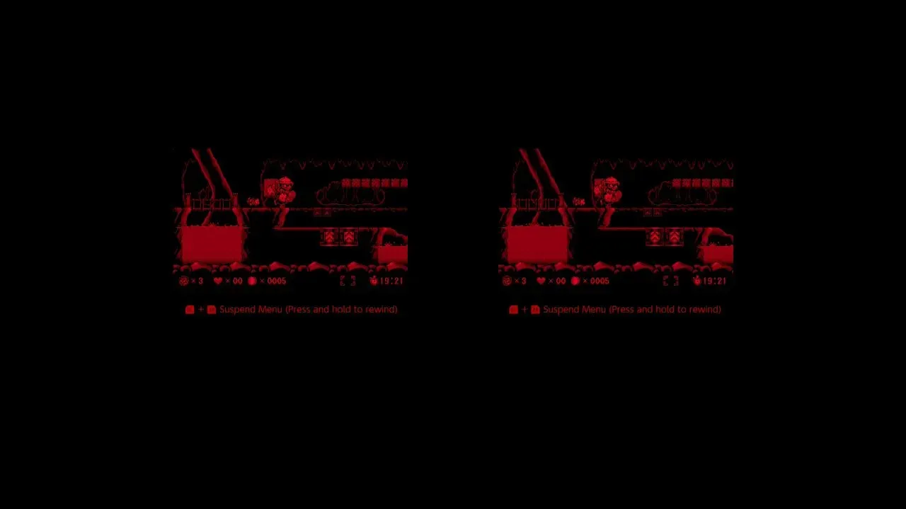 Bear in mind there are some Switch-patented hurdles: if you leave your console alone, you’ll have to unlock the Switch 2 and re-select the Virtual Boy icon to keep playing. Moreover, no video-recording allowed, so we’re sadly unable to share our adventures in eye strain. In motion, anyway—at least Nintendo was kind enough to allow screenshots, but as the Switch 2 utilizes the clandestine twin screen display, that means they look like this: