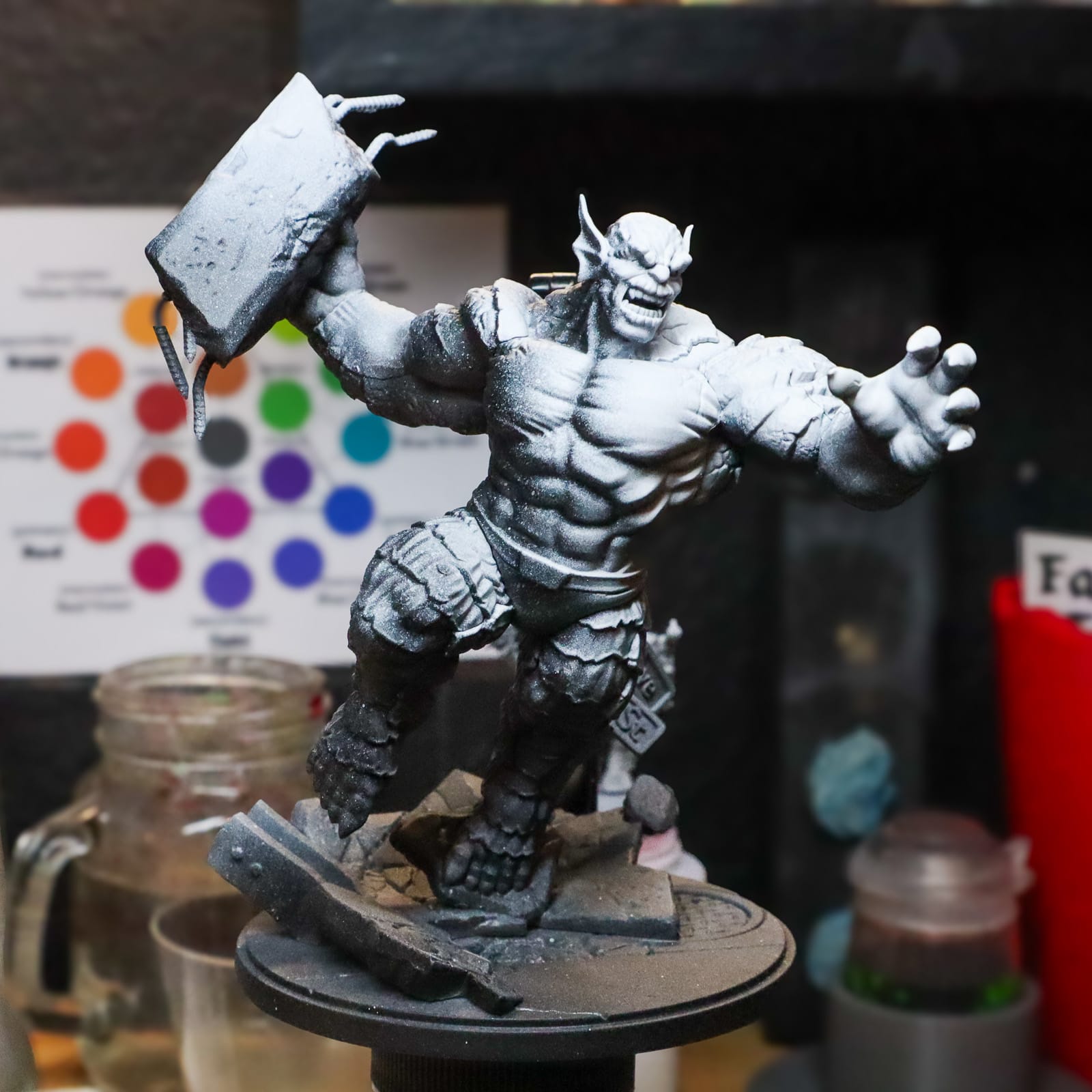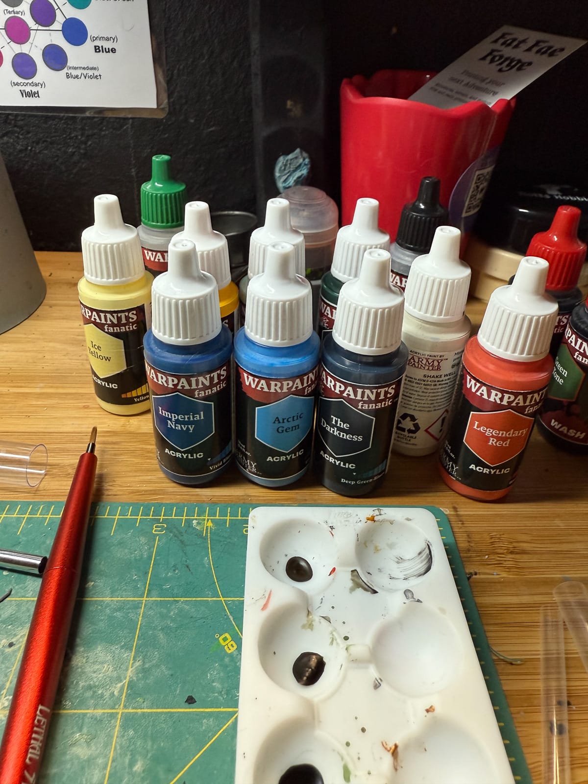 Early stages of painting include priming your model and setting up your paints.
