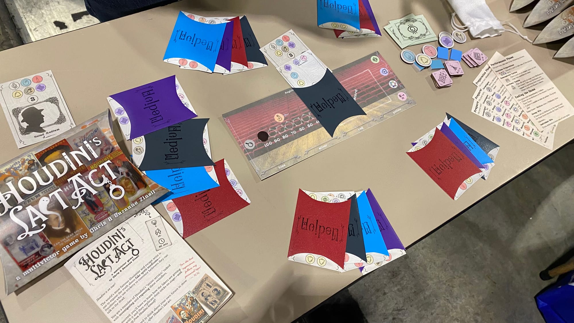 Left to Right: Hnefatafl Valhalla, Houdini's Last Act, Adulting, Bloomline, A Wizardologist Most Hexasperated, Fold & Fly