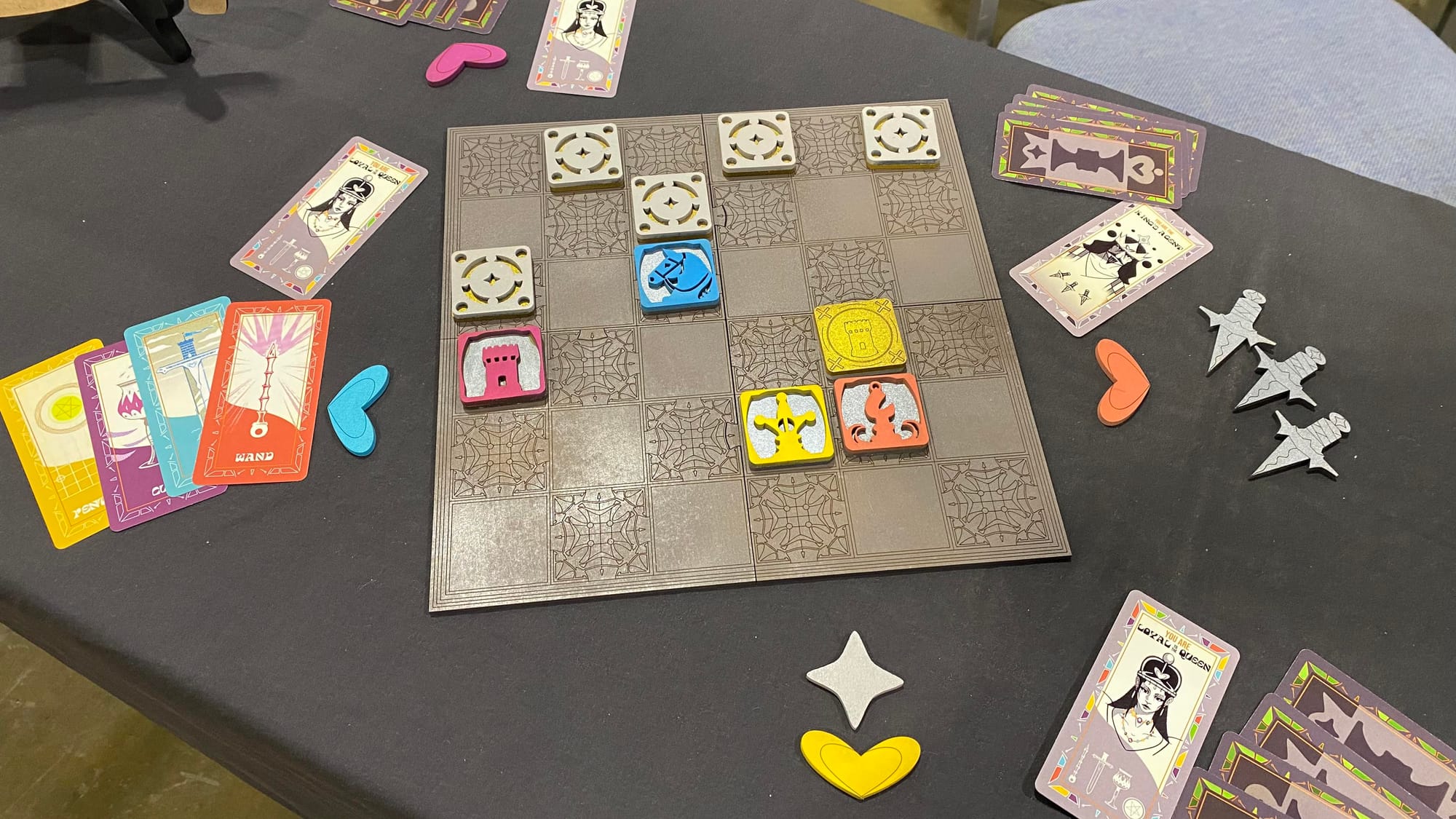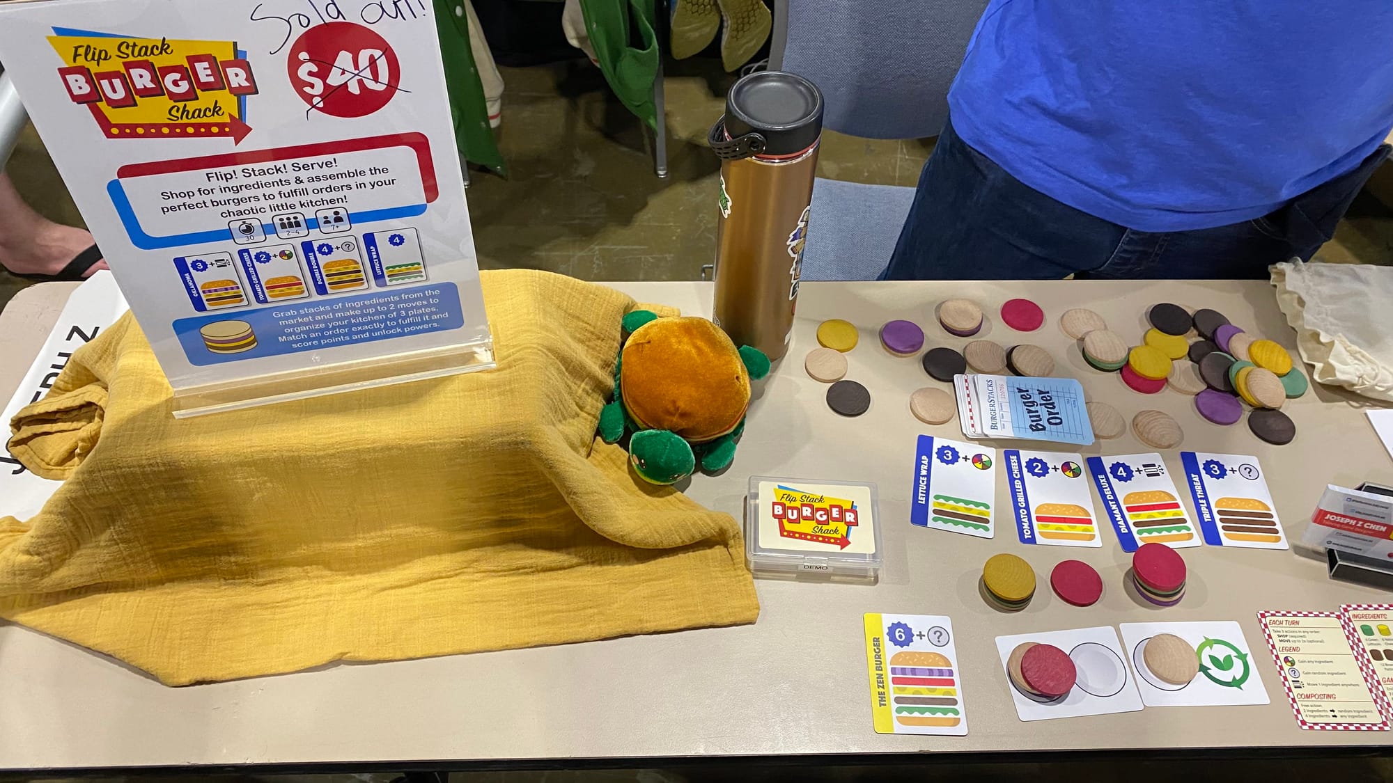 The event listing on the PAX website indicated that potential purchasers didn’t need to rush and were free to show up closer to closing time at 10 pm, but despite being there at the start of the event, several games sold out fairly quickly! Most notably of these (by which I mean, the games that were gone by the time I got there) were Flip Stack Burger Shack—a simple game about planning and manipulating burgers for customer orders—and The Gray King—a cooperative prequel to Chess, where one player will backstab the others.
