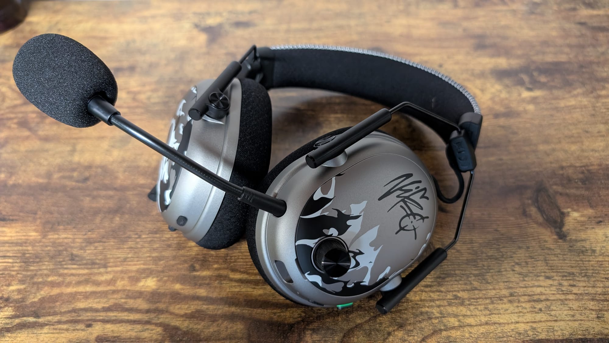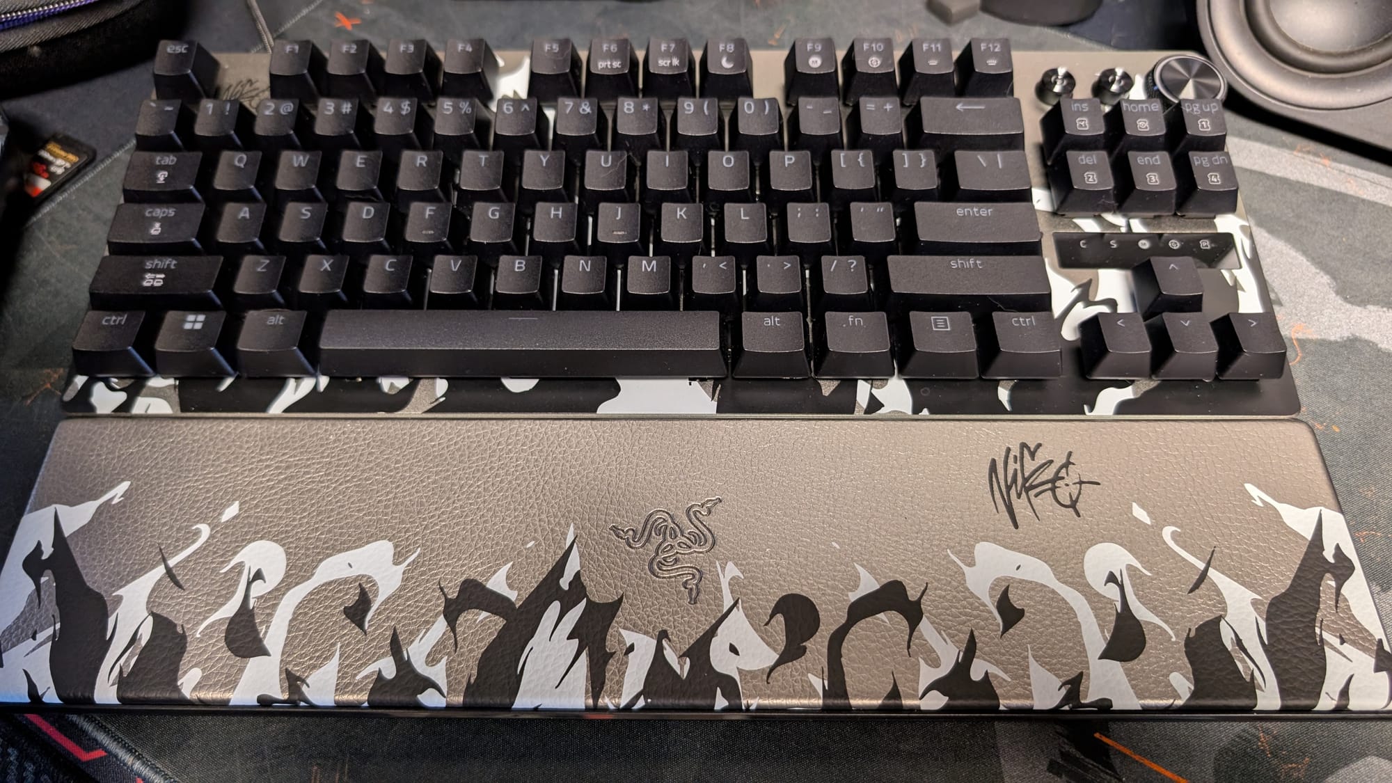 Razer has launched four different products for testing: the DeathAdder V4 Pro mouse, the Gigantus V2 Pro mouse mat, the Huntsman V3 Pro TKL 8Khz keyboard, and the BlackShark V3 Pro headset. The only thing we didn't have a chance to check out is the Gigantus, but you can look at our V2 Pro mouse mat impressions from the new line here. All of the gear is dark gray, with black and white flames adorning the bottom halves. With NiKo's signature topping off the package, this is one of Razer's best looking collections.