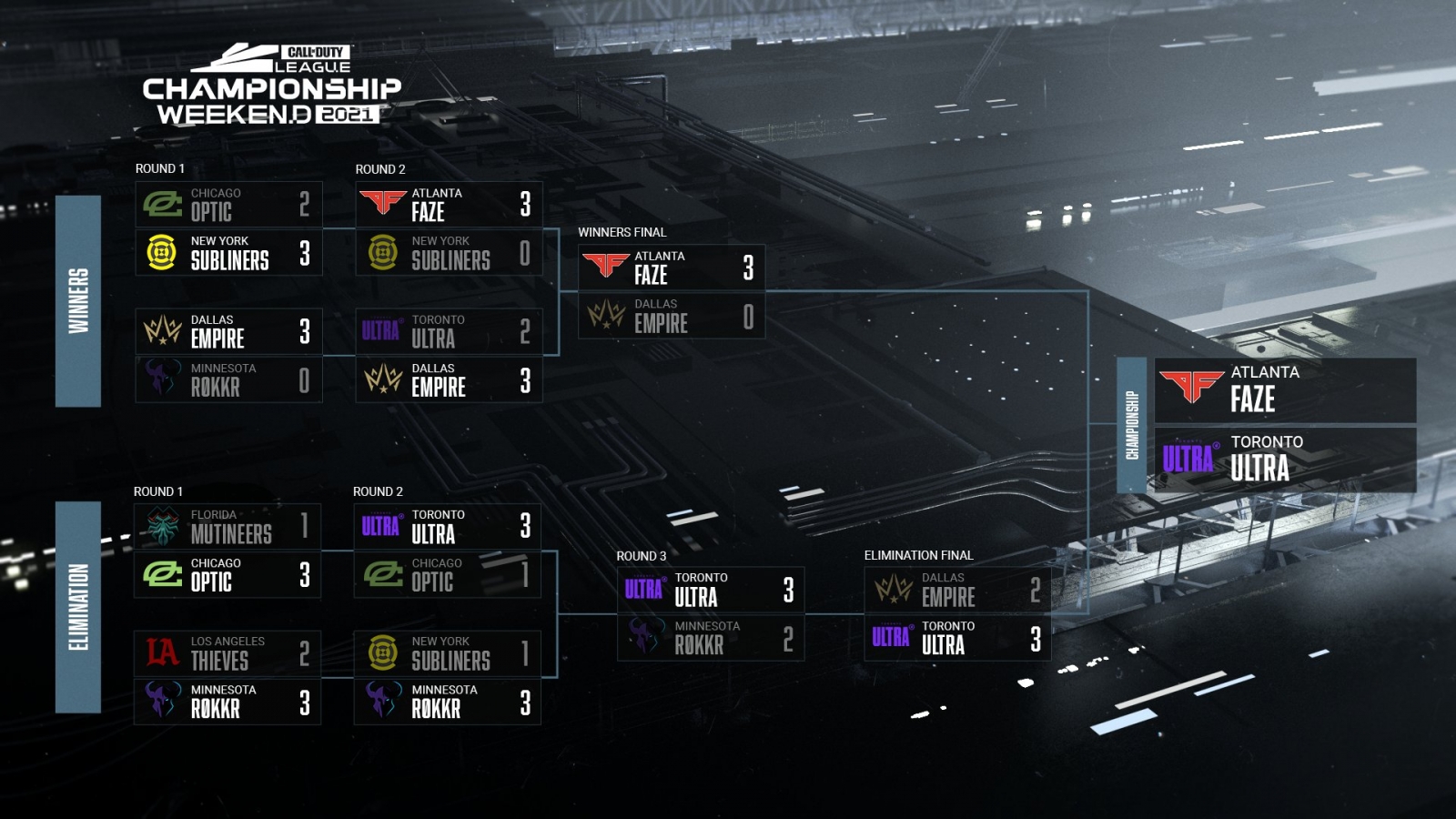 - Dallas Empire looked unbeatable after the first match of the tournament, finishing off the Rokkr in a dominant 3-0 that had many predicting back to back championships. While they won a close one versus Toronto in winners, they still looked like their clutch gene was intact, but then the Atlanta match came and they looked whipped. Another close game versus Toronto later, and the Ultra returned the favor, knocking them out of Champs and ripping the chance at a ring for the second time in a row from their fingers.
