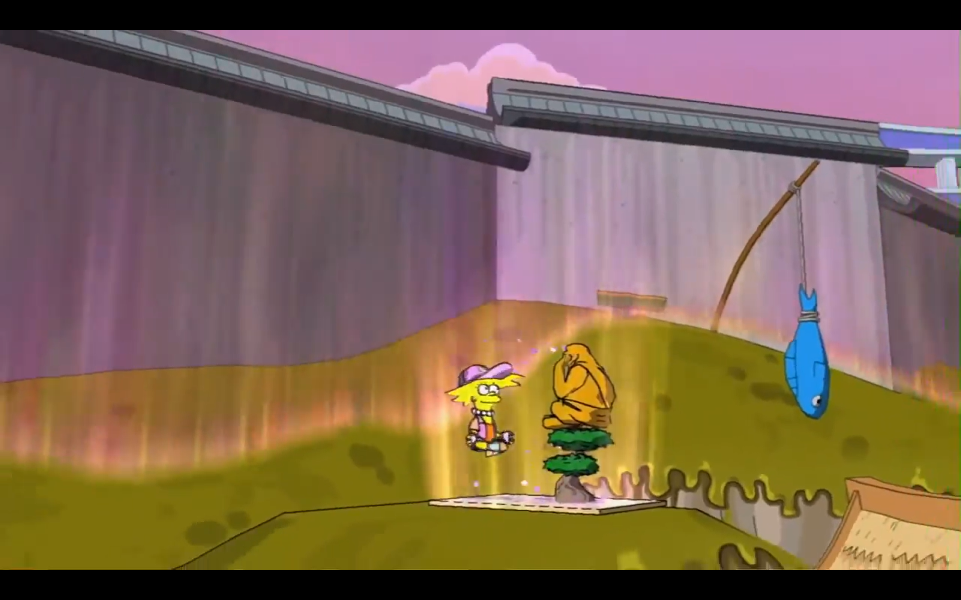 Parodies are peppered throughout The Simpsons Game, whether they are references from the show itself, or to other videogame, or to pop culture, there are so many call backs and cheeky nods that coalesce into an aura which distinctly and unequivocally defines The Simpsons. References to the show are all over the place, including Moleman’s remarks about the sun and his decaying vision, Lisa’s ongoing quest to restore nature’s vibrancy against the tyranny of Mr Burns, the appearance of Lard Lad - that giant donut mascot from Treehouse of Horror VI - and so many more nods that they fill up most of the game’s content. These references are terrific and ensure The Simpsons Game blooms with the specialized flavour of TV’s greatest animated family, and they bleed meticulously into the gameplay in wild and entertaining ways.