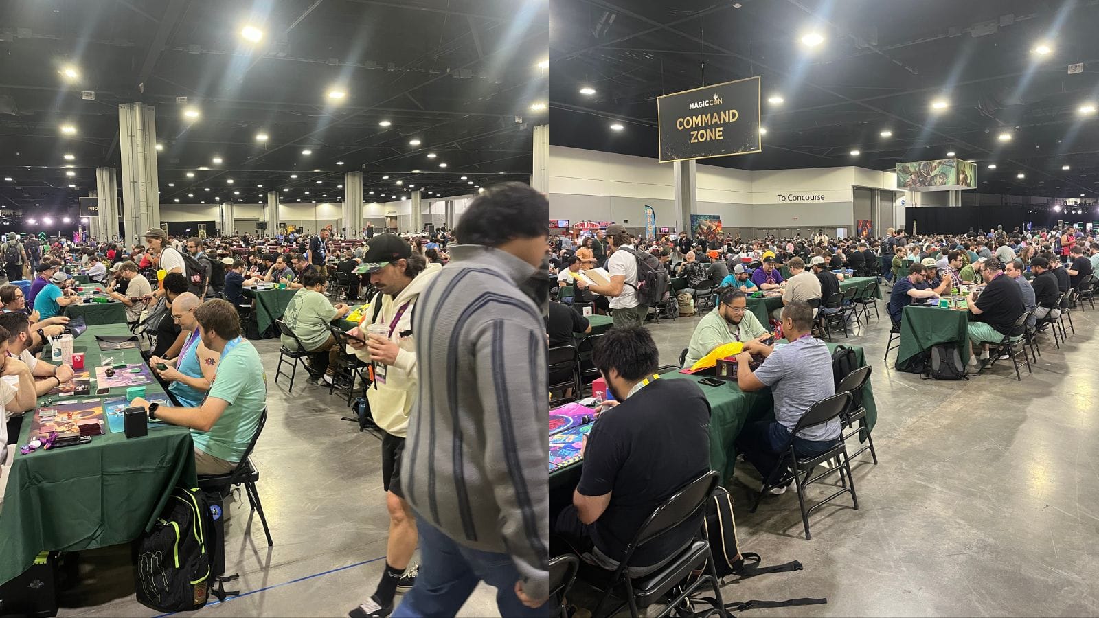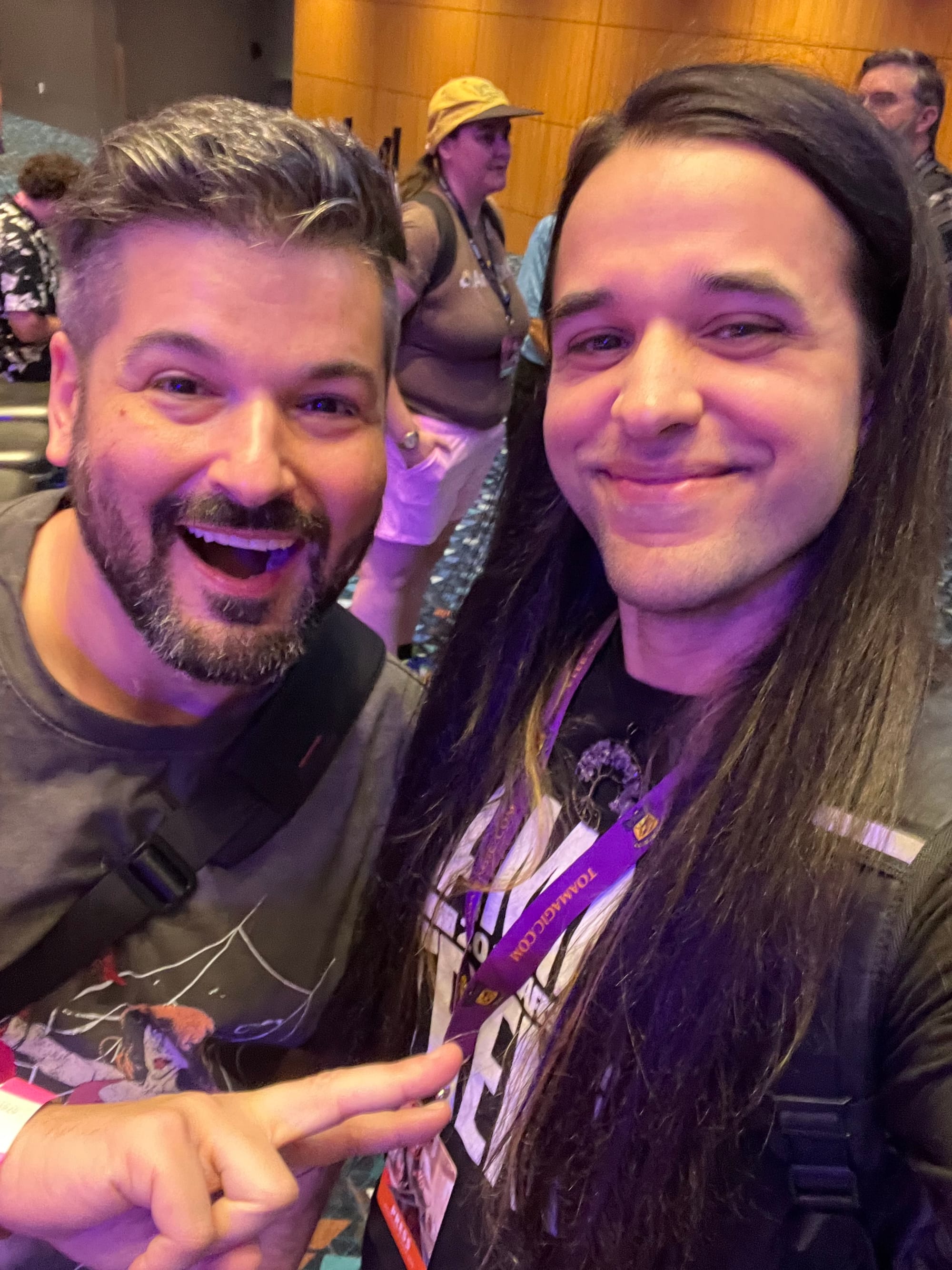 Throughout the floor, there were vendors buying and selling, a content creator area to play against your favorite creators, meet and greets with a variety of characters in the Magic: the Gathering community, more areas to take pictures, and lots and lots of people playing matches both as part of a tournament and some just for fun. A large portion of the show floor was an area full of Magic: the Gathering artists all at tables so fans could get cards, playmats, or art signed by their favorite artists. (I also had a chance to meet the first Twitch Streamer I ever watched, Darkness429, as well as online personality, Anthony Carboni.) The MagicCon show floor had plenty of space to move around and felt easy to find your way around.