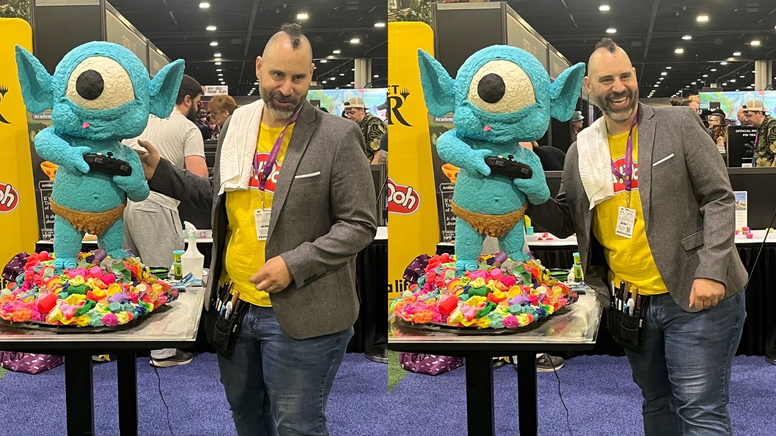In the same area, I was also told quickly I had to meet the Play-Doh creator! He was hard to miss as a HUGE Play-Doh statue was being worked on as the con continued, Jason Loik. His creation was there to showcase a collaboration between Magic: the Gathering and Extra Life (which you can order now).
