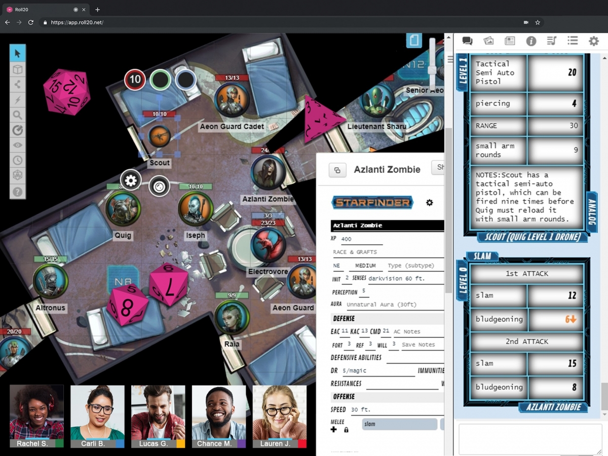 Use your favorite math rocks or send all your rolls right to the VTT chat, powered by Roll20’s signature quantum roll server