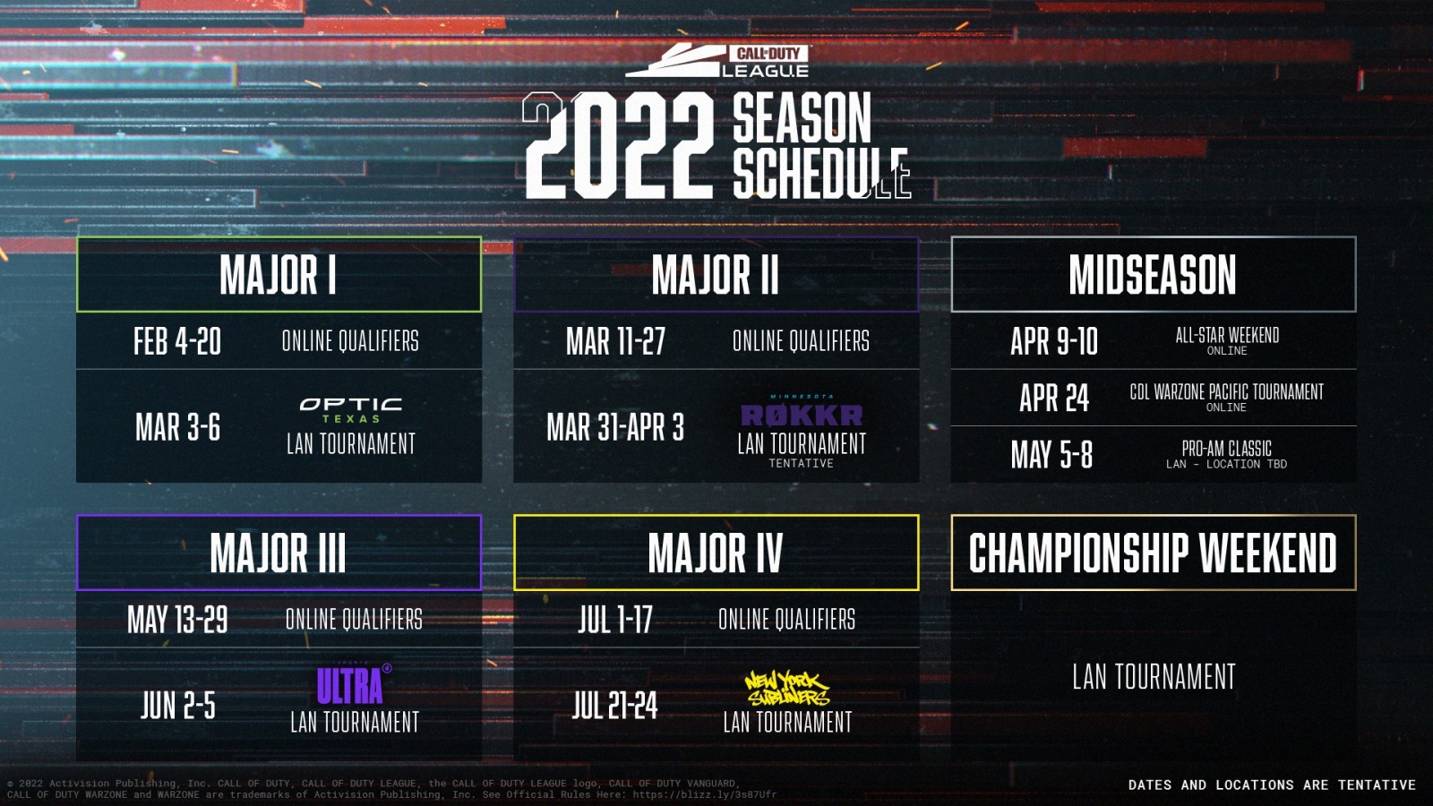 The 2022 Call of Duty League Season Schedule