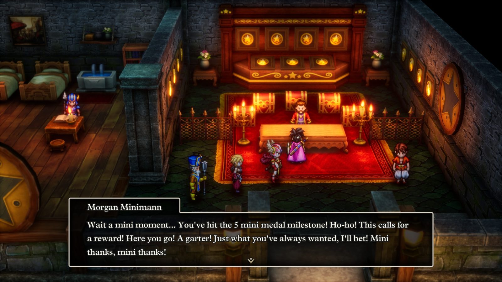 Some changes I’m not too keen on, however. The dialogue where you meet with the king as a female protagonist has been removed and replaced with the normal speech. He no longer misremembers you as a boy, which I thought was chuckle worthy in other versions and can easily allow players to headcanon their hero as trans. I can understand this change, as Square Enix is… attempting to make the game more inclusive, but overall I think they’re going about it the wrong way, as mentioned above with the Type A and Type B debacle. Still, I hope the old man who wants to become a young maiden is still hanging around Alltrades Abbey.
