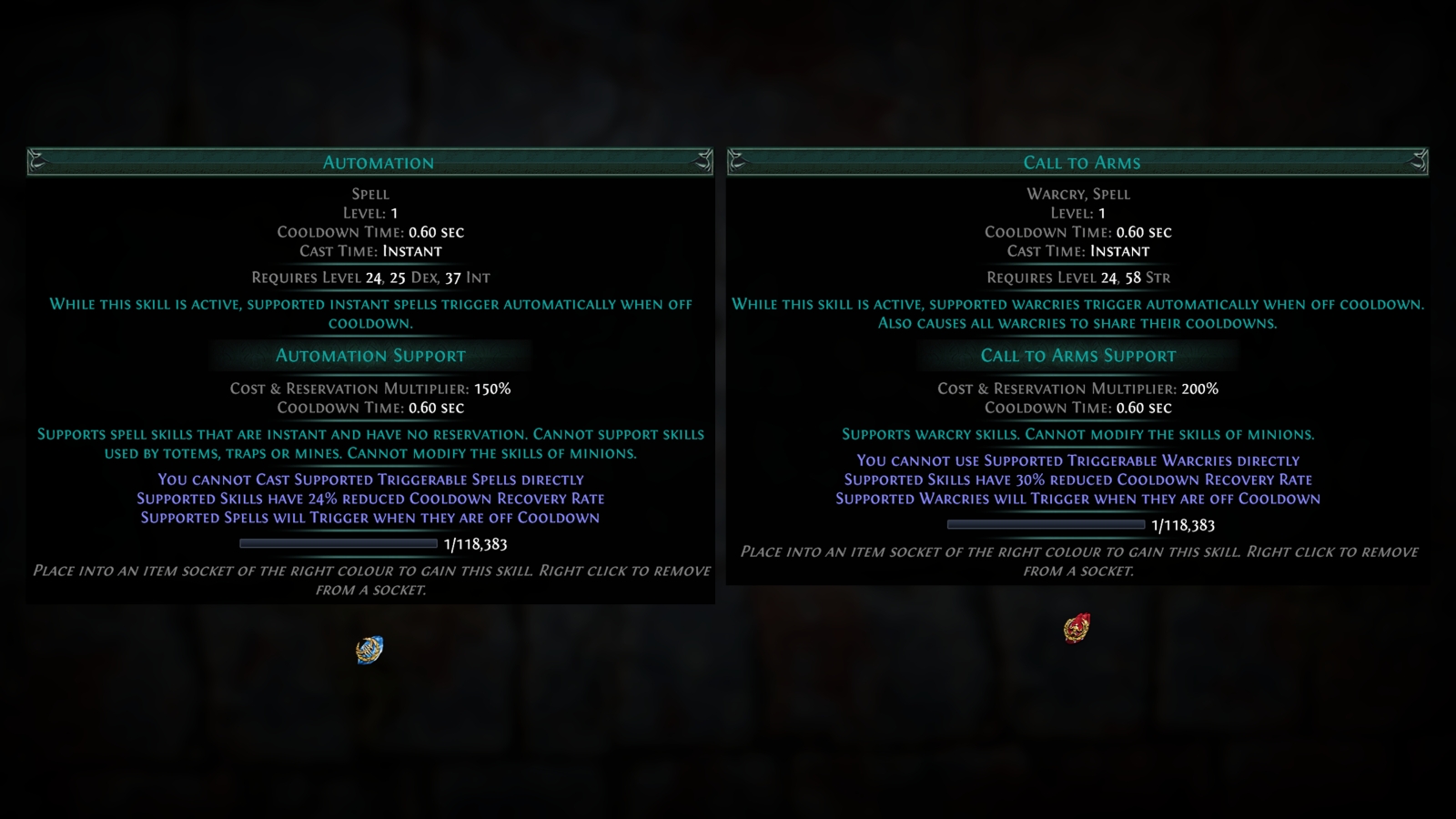 When all of these gems combine, you might unleash a massive supernova of critical hits, chained lightning, and explosions that all trigger, re-trigger, and completely melt any foes in their wake. It was frankly awesome to see – whatever effect you can imagine, you can create it with support gems. This is something we’ll be exploring at length as there just doesn’t seem to be an end to this list of special modifiers.