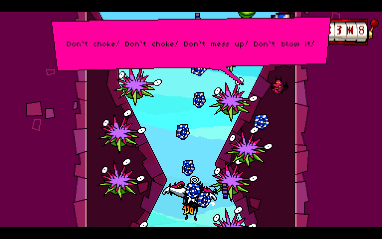 Antonblast succumbs to its desire for chaos to the detriment of the game as a whole. By doing so much to impede your ability to parse out upcoming hazards, it can often feel like the game is taking arbitrary potshots at your health bar. Control over what hits you may not literally be out of your hands, but the game design conveys the feeling it is all the same. The challenge revolves less around avoiding damage so much as remembering to avoid it on your next attempt.