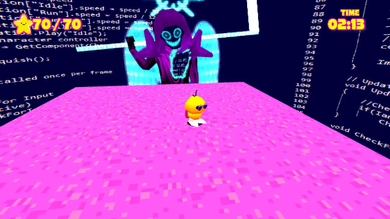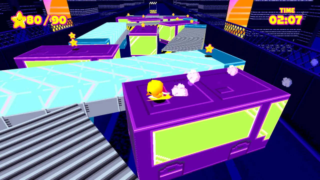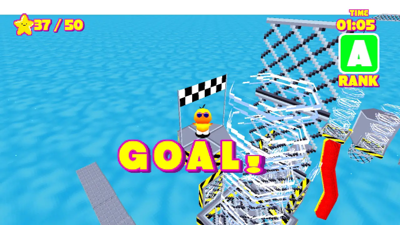 In Toree 3D, you guide the titular bird across 9 levels in order to get to the exit. Toree can run and double jump, but cannot defeat the enemies that are in the way; hit one and you get sent back to the most recent checkpoint. It’s a simple gameplay system that works in the game’s favor. Owing to the PS1 aesthetic, it feels like a fifth-generation 3D platformer with the speed of an early 3D Sonic game (thankfully without a massive number of glitches). There are some other goals that you can achieve after running through a level, where you can collect stars or get an A ranking on the level (doing either will unlock a bonus character). The former takes some time but is easier than getting an A ranking, of which times are pretty tight. I had to retry and optimize my strategies in order to even get a handful of A ranks, though the level design is great to zip around with Toree, but I just wish there was a concrete way to look at what time is needed for an A rank.