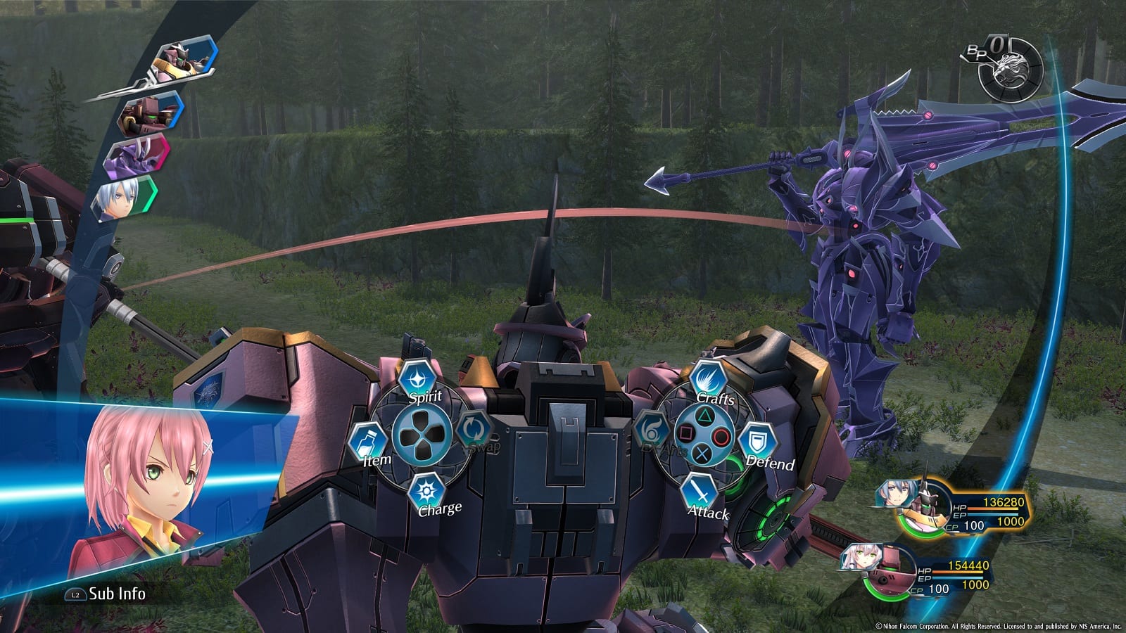 In addition to dismounted combat, there are special instances where you can engage in giant robot battles. These are a lot like normal combat, but with even bigger numbers. It actually reminds me a lot of Skies of Arcadia’s Ship battles, in which reacting to your opponent’s next move is often more beneficial than going all out on the offensive. Getting hit without defending can take out a huge chunk of your HP, so you have to wait for your opportunity to knock your opponent’s mech off balance and then you can pull out all the stops. These are very fun pace breakers, but they occur about only once or twice per chapter and I wish there were more instances. Some characters can also summon their mech in battle, but this is just a big attack instead of actually boarding them. Regardless, they’re a lot of fun and I look forward to them every time.