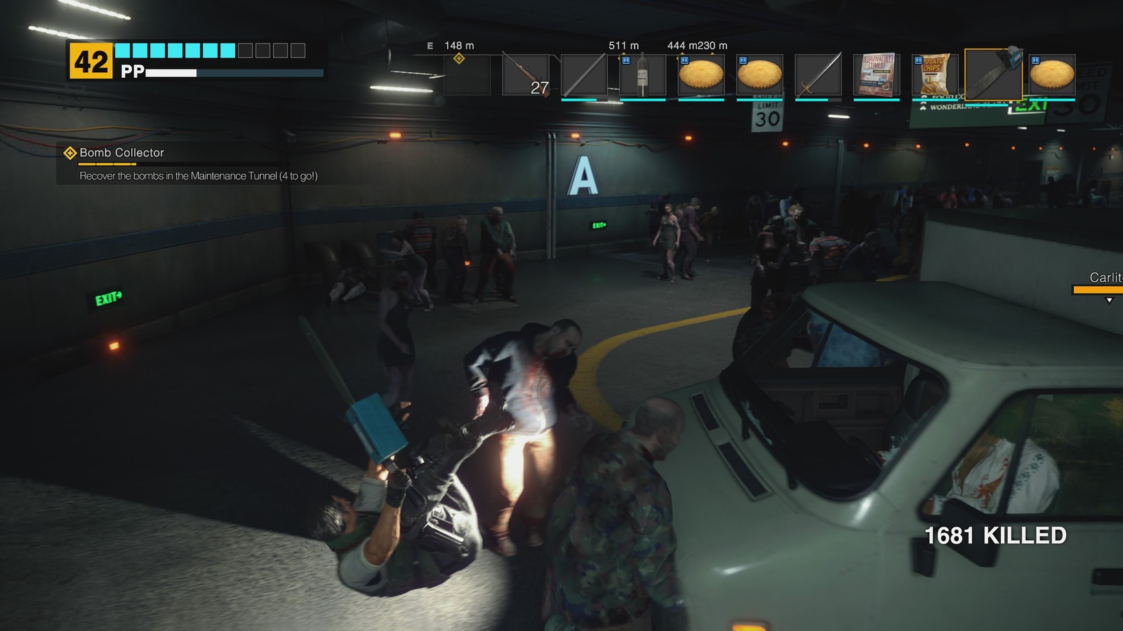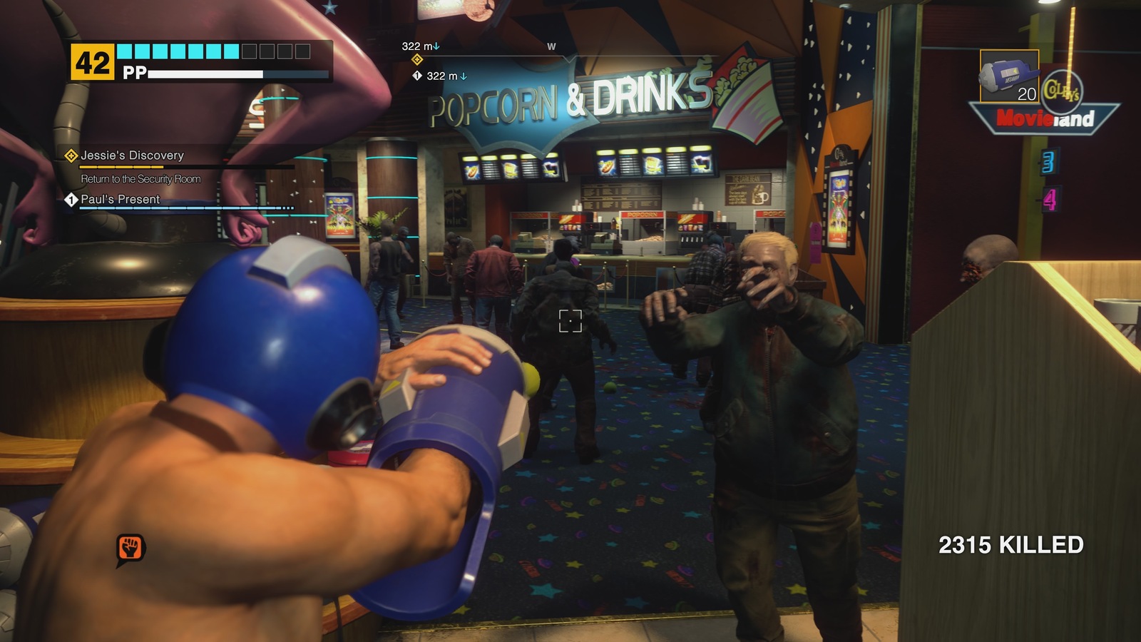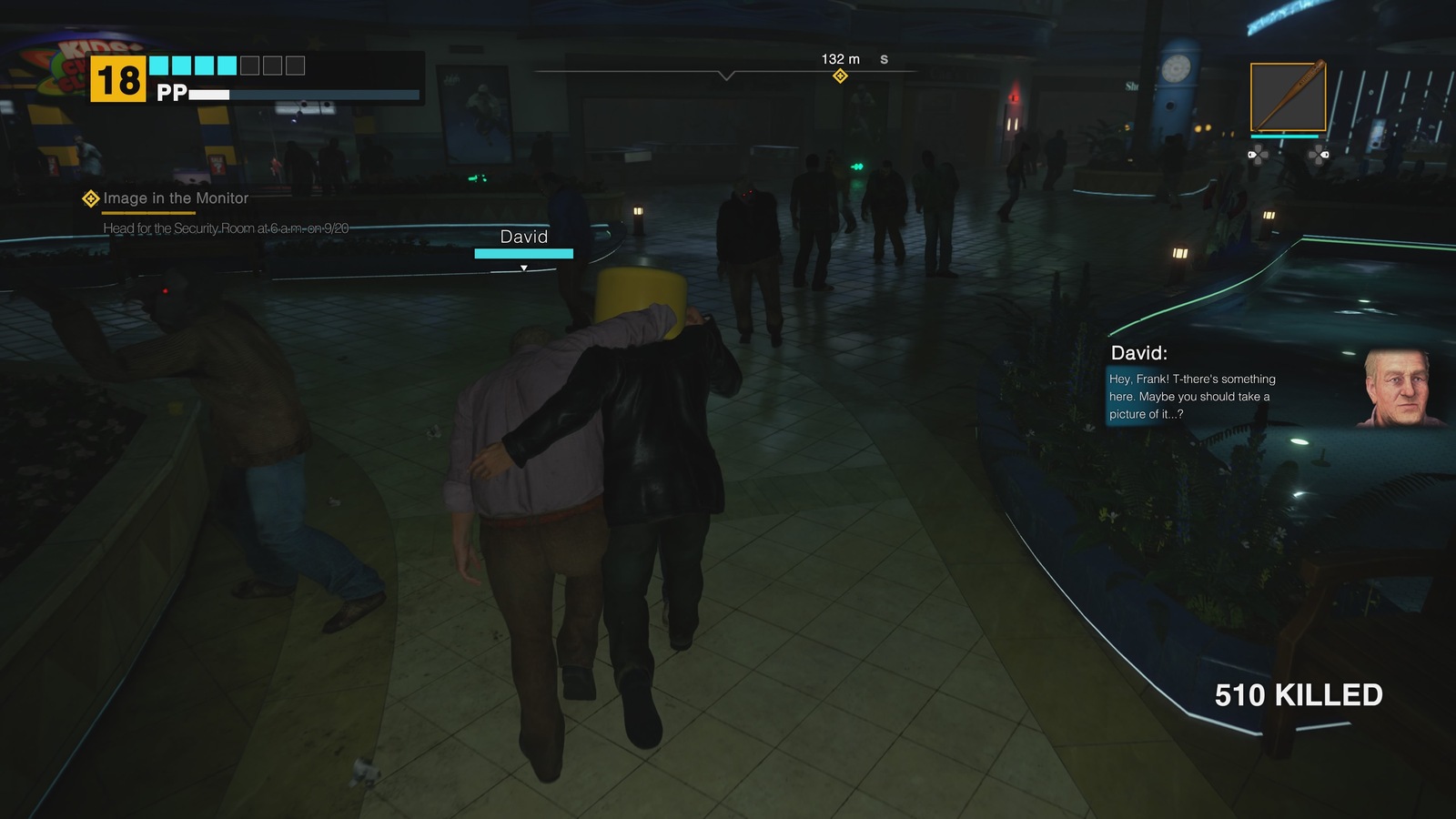 Most changes to the gameplay experience come in the form of smaller adjustments. Controls have been reshuffled for “modern” players, although a classic layout still exists. Otis the mall janitor frequently calls Frank to relay information about the goings-on of the mall, and previously Frank had no choice but to drop everything and listen to him. Now, you can do as you please while listening in, preventing inconvenient hold-ups to the action or unintentionally making yourself a defenseless zombie snack. Frank can also now freely move while aiming a gun. Dead Rising’s combat always emphasized your overall fight strategy more than the moment-to-moment actions, and I don’t think that this addition changes that balance.
