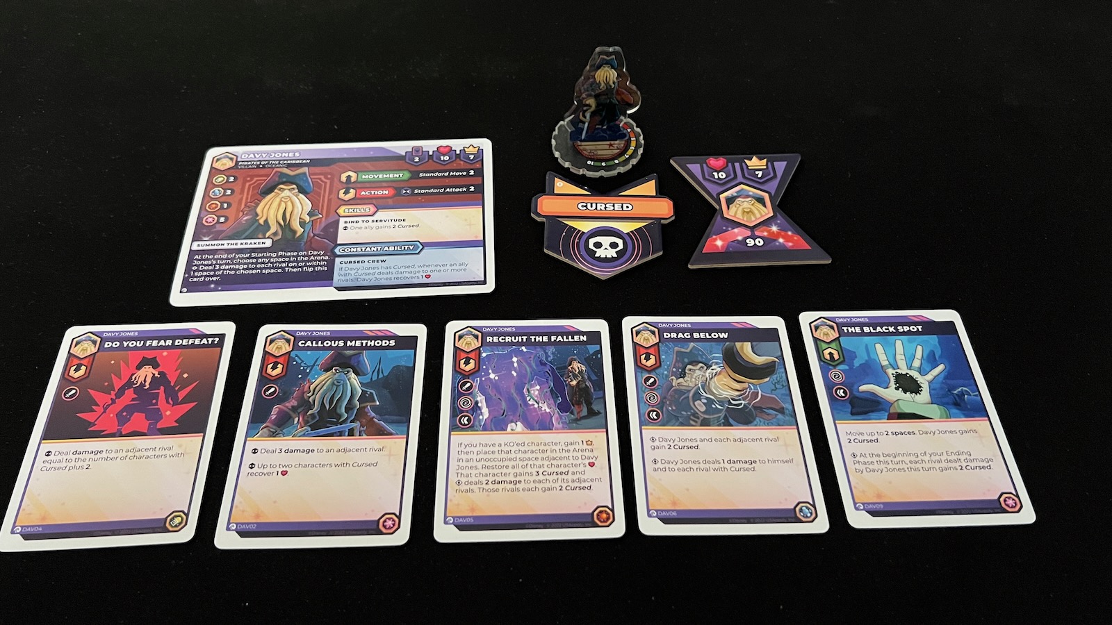 As a team, the three characters worked well together. However, with only one other oceanic character from the core game, there are not a lot of options for oceanic synergy outside of this expansion. When it comes to production, I again will complain about the card quality and the easy bending. I have immediately started sleeving these cards due to the amount of shuffling that takes place and the feel of the cards in my hand. My copy was also missing a Davy Jones figure, however, the Op was very swift in sending me a replacement through their customer service portal online. With the new status condition, when playing characters from the expansions, players will need the instructions handy instead of only relying on the reference on the back of the manual.