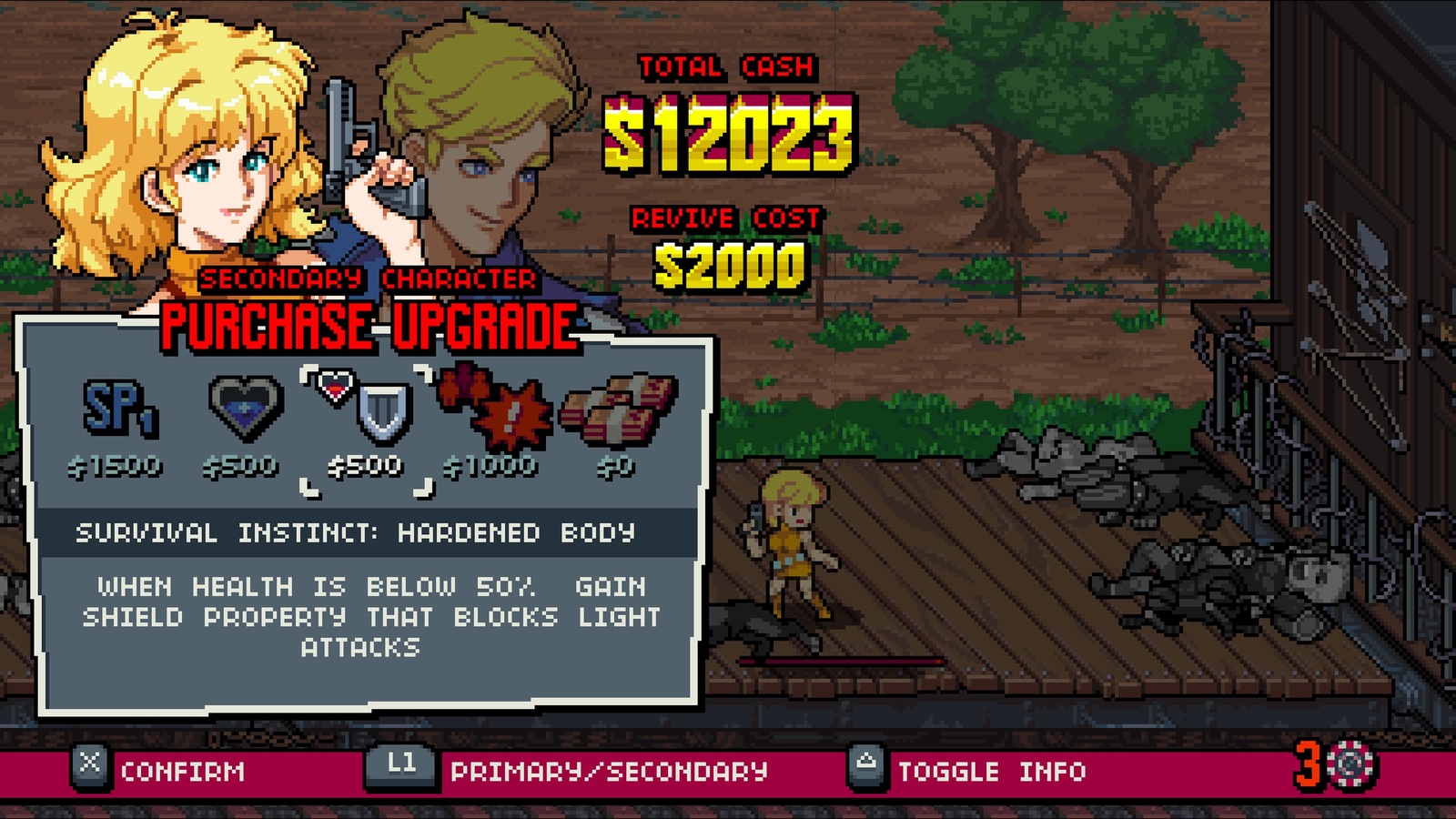 Beyond that, most of Double Dragon Gaiden’s replayability options boil down to mostly stats. The difficulty sliders focus almost exclusively on stats. Purchase upgrades ideally should result in new ways to experience your character and create new playstyles, but that’s not how it pans out. Unfortunately best upgrades have less to do with making the game more fun or interesting to play and more about remaining competitive with the enemy’s stats. That’s okay, just not particularly exciting.