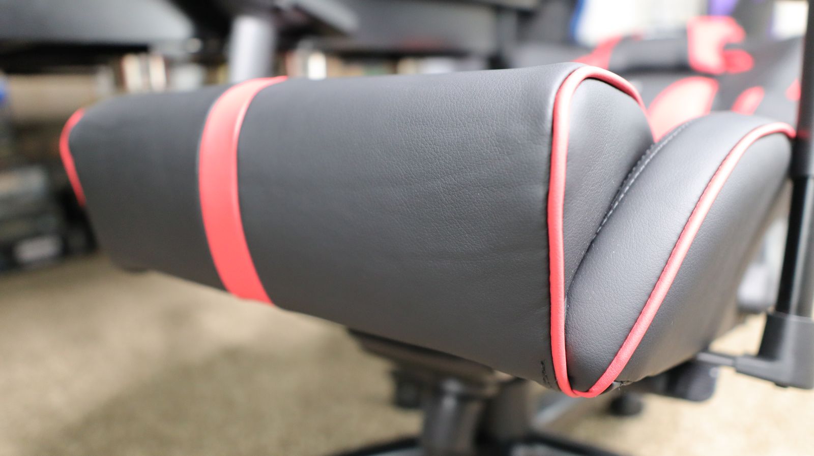 Moving into the seat itself we see some massive differences that may not be immediately obvious. Two of the chairs we are comparing also use PU leather (aka synthetic leather or “Pleather”), with the third one using cloth. The Flash XL uses what the E-WIN team is calling PU 2.0, adding stain resistance, greater ability to reject moisture, and the ability to resist damage, cracks, and fading — something standard PU leather is known for. Using a simple moist cloth to keep it clean, this material should look just like it does right now for years to come.