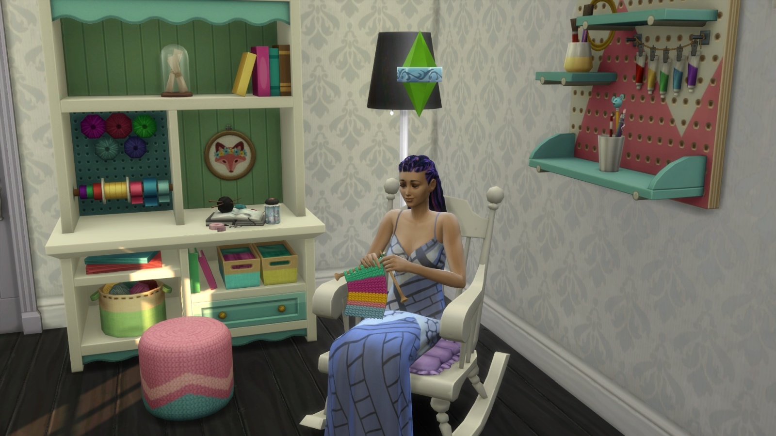 Some new furnishing items are also included with the Stuff Pack. For the sake of doing the review quickly, I added a pre-made knitting room to my house. The items all fit the theme well, and feel very homey and comforting. The only downside is my family kept coming into my knitting room to bother me. Maybe next time I will have to lock the door so I can knit in peace while I rock out to my metal.