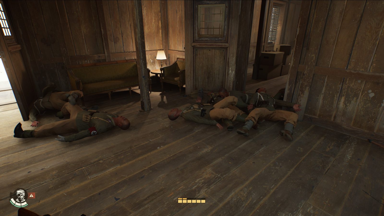 Guns offer a few more options. Of course, you can fire them to quickly take out Nazis, but that’ll alert anyone nearby. You can also press the X button to flip the gun around and use it as an improvised melee weapon, though it’ll still break after a few hits like any other implement. I had a blast spending most of the game being as stealthy as I could, though I did eventually resort to using firearms after a few sections where shooting was mandatory. This self imposed challenge was a ton of fun though, and I would encourage players to keep to the shadows as much as they can because taking out an entire camp without anyone spotting you is incredibly satisfying.