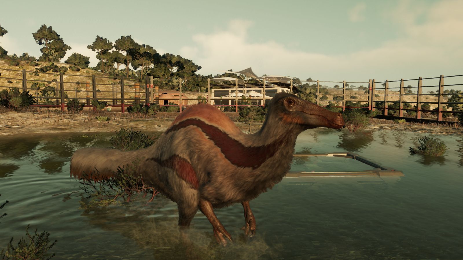 Next up in the Feathered Species pack is the small but mighty carnivorous Sinosauropteryx. I was able to slip in a tiny enclosure in the back of my park with these wee ones, and the guests love them. They are full of personality and spunk, and I kind of picture them strutting to the Bee Gees song “Stayin’ Alive” because of the way they walk. The fluffy long tail and cute lil hands are racoon-like, but they are fierce little predators. Because of their tiny stature they are a great fit to add into a park where you have some odd spaces to fill.