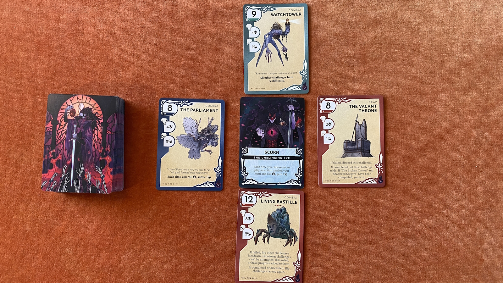 Another introduced feature that I love is alternate win conditions. Inside Scorn’s well there are three artifacts that, if you manage to find and collect all of them, will win you the game! Given the randomness of the well deck and how delving works, even finding them all is unlikely. But it is great to have another means of victory. If you find one piece early on, do you spend the effort to try and collect it in case the others show up? Or do you save your energy and just let it go?