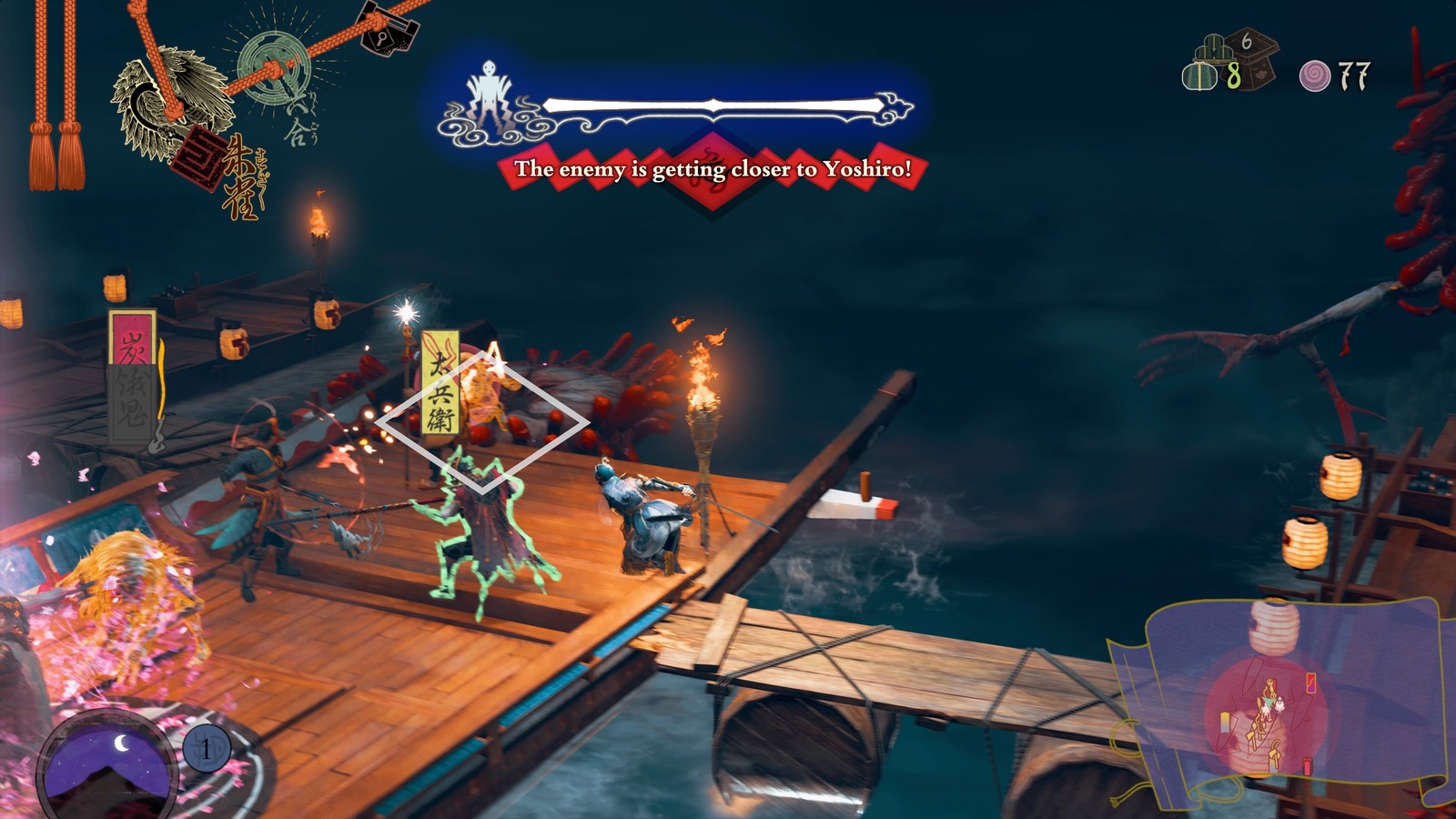 All of that said, Kunitsu-Gami kept me engaged to the end by playing with its structure. Most levels introduce new environmental elements and traps for you to play around with. Some levels forgo the “typical” gameplay entirely with ideas like removing Soh from the battle or sticking everyone on boats. Boss fights do perhaps the best job out of everything in varying up the gameplay and emphasizing the power of different strategies. The game offers a surprising amount of variety, stretching its concept in all kinds of interesting ways.