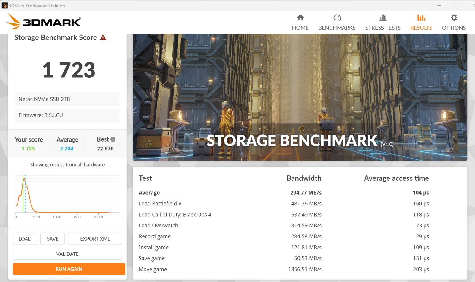 3DMark also has a benchmarking suite that’s meant to approximate real-world performance. I’m not sure I trust the numbers completely, but they do provide an aggregate snapshot, and more importantly, the average access times across a wide variety of file sizes. What we see here is a very performant drive.