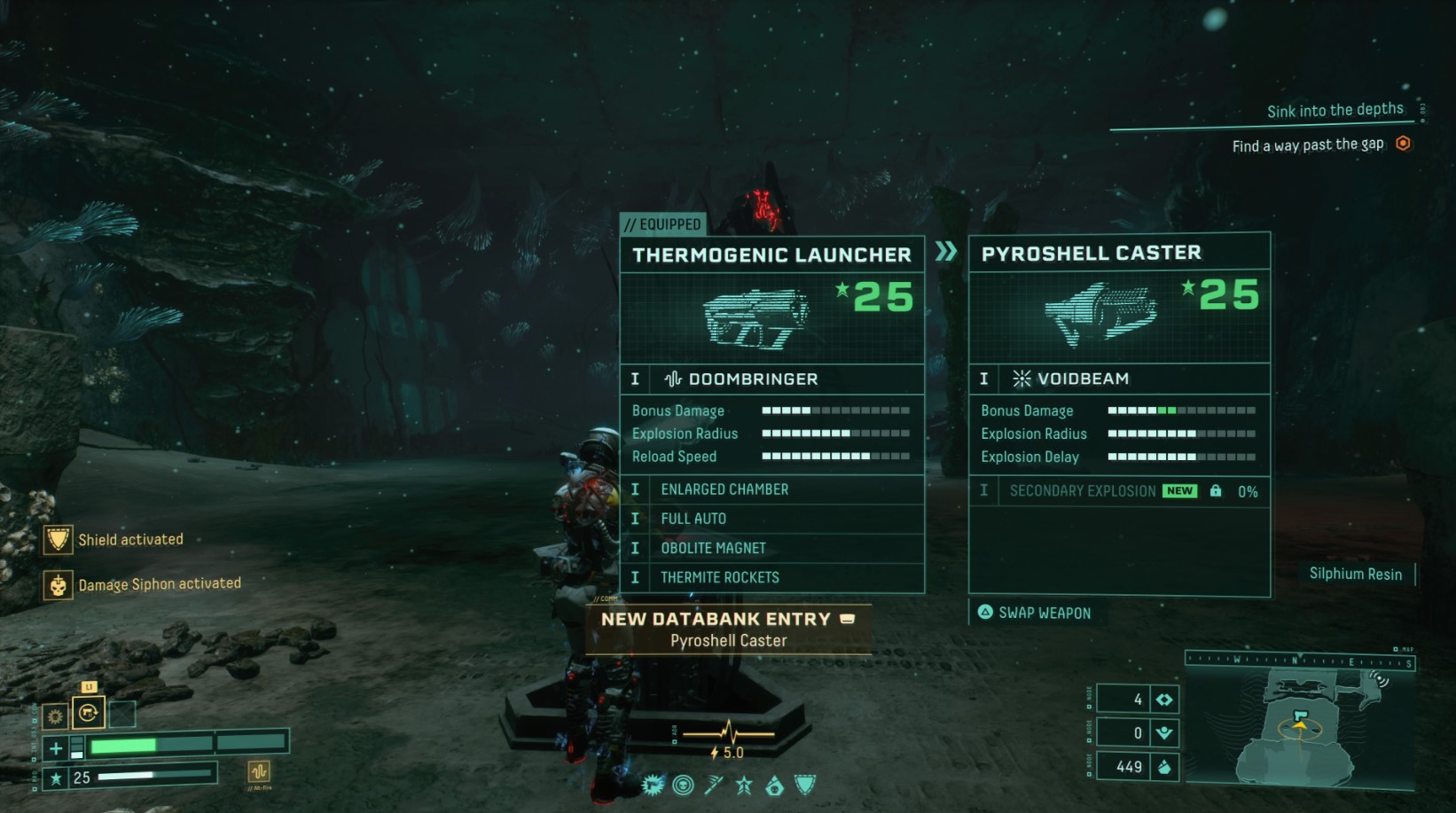 Speaking of combat, Returnal’s gameplay is nothing short of impeccable. I’m a huge fan of fast-paced gameplay in any medium, and Returnal does a great job of scratching that itch. Guns feel weighty and accurate, movement is swift but precise, and enemies are unique and unpredictable. Players can jump and dash across high distances and use a variety of guns, explosives, upgrades, restorative items, and more. So in terms of pure action, Returnal is one of the best games I’ve played in recent years.