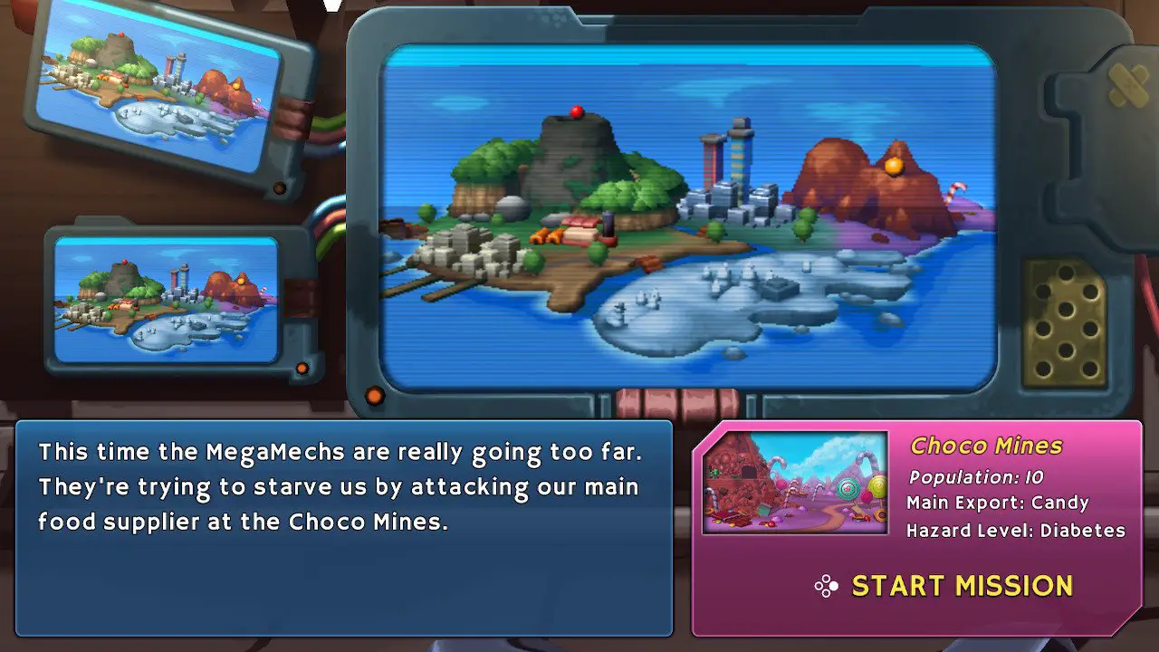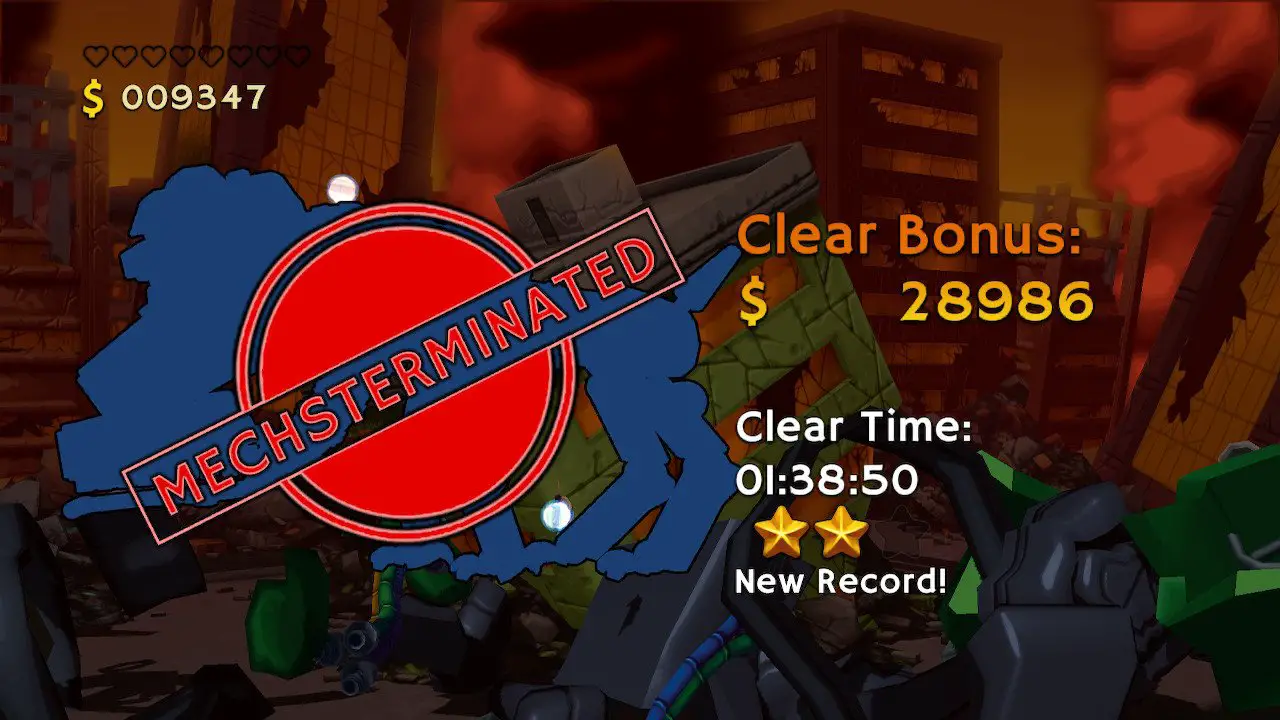 On a technical performance standpoint, the game is solid, as it never stuttered in handheld or docked mode and ran pretty smoothly. The graphical style is acceptable, with a goofy (if slightly generic) aesthetic; it looks like a slightly worse version of Gunman Clive, but that’s probably due to Mechstermination Force lacking the deliberately crayon-esque art the former had. The music is exciting and fitting for the silly tone of the game, and I appreciated the variety of tracks here, much like I did with the Gunman Clive series.