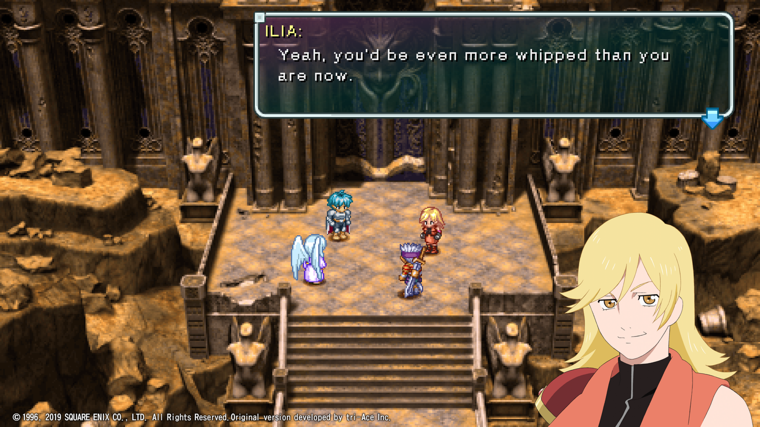 While there were a lot of annoyances, I still enjoyed the game and some of the additions to this new version are pretty cool. You can choose from one of two sets of portraits for characters as well as three different dubs for the plethora of voice acting. I ended up using the PSP portraits because I feel like they fit the in game sprites (which are beautifully animated), and the English dub, because I haven’t learned Japanese yet. You can also hold the R2 (or equivalent) button to move faster around the world, which is incredibly convenient and I can’t imagine playing this game without it. Finally, the game’s balance has been tweaked: while I didn’t have any trouble with the first two thirds of the game, and every boss was a joke, encounters in the final five or so dungeons can leave you drained of both HP and MP if you’re not prepared.