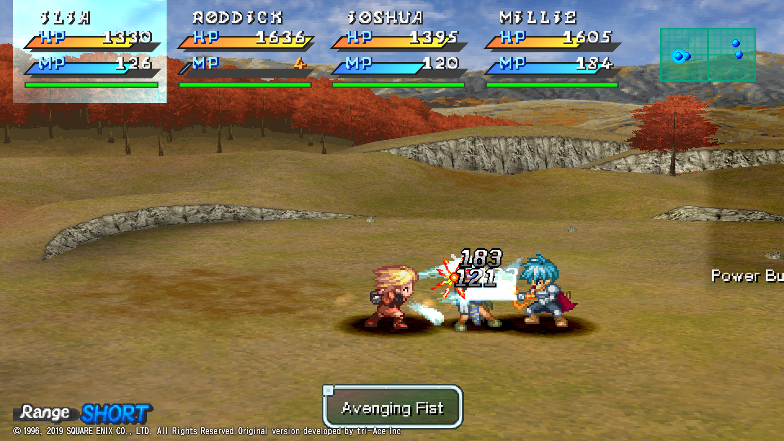While I really enjoyed Star Ocean’s world, story, and characters, the same can’t be said for the battle system. In combat, you control one of four characters who enter the fray with you (I chose to play as Ilia, because who doesn’t want to punch dinosaurs and robots in the face). You move around, attack, use items, and cast spells in real time. Aside from casters who choose their spells from a menu, each character can only bring two special attacks into battle with them, so you have to choose carefully what type of attack you want with you for each situation. Unfortunately, the AI is dumb as rocks and will just spam the attacks you give them until they run out of MP, or in the case of healers attempt to cast a healing spell on a downed party member istead of reviving them. The strategy for every single battle essentially boils down to this: surround the enemy and, if the AI complies, pummel them senseless. If that doesn’t work you can either push through with an abundance of items or try and upgrade your equipment using the skills system.