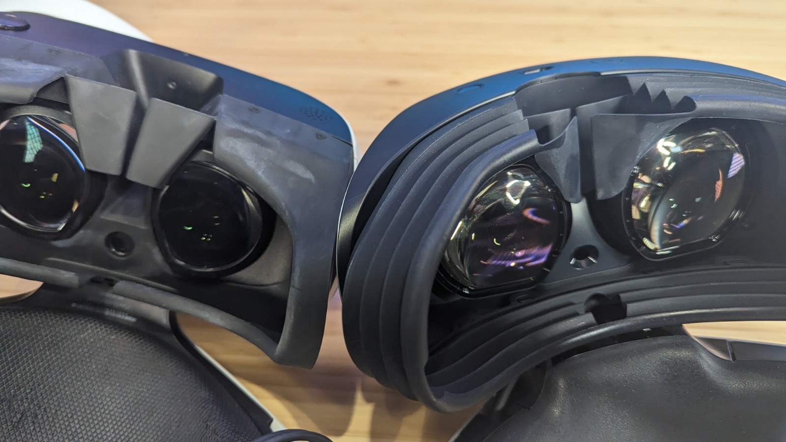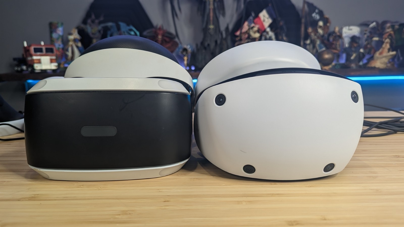 PSVR1 on the left, PSVR2 on the right — note the lens size.