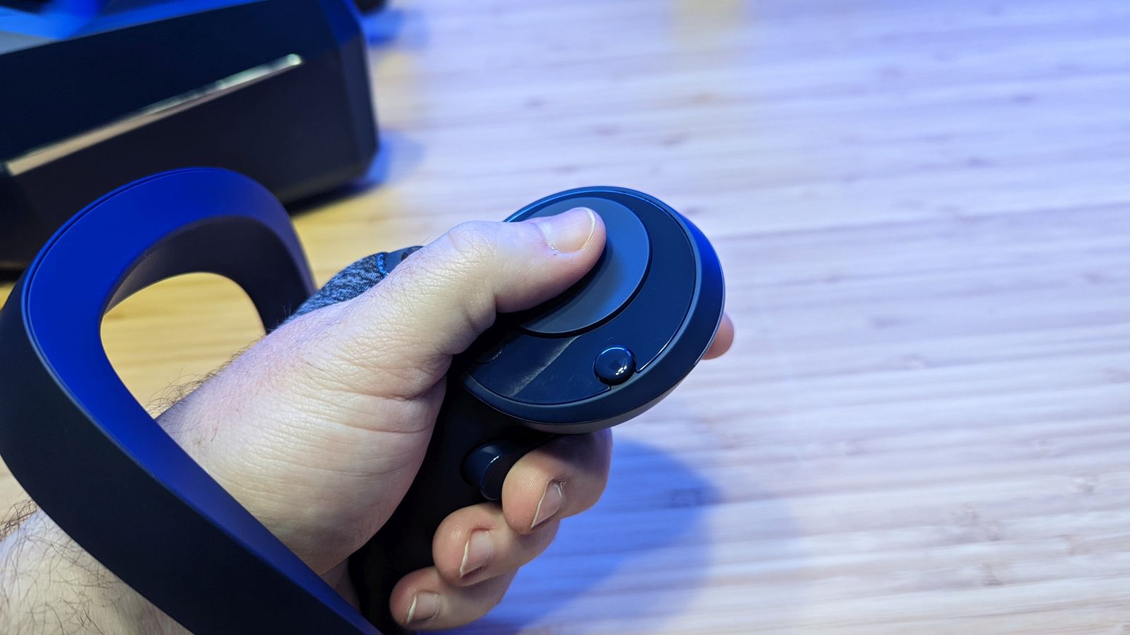 Nearly every controller on the market has a thumbstick, but Pimax has replaced this with a large trackpad. Next, they’ve relocated the second button down to the middle finger on the grip. Ergonomically it makes sense as you can keep your fingers in position without having to move to actuate them, but track pads have been problematic in the past – we’ll get back to this in the testing portion of this review.