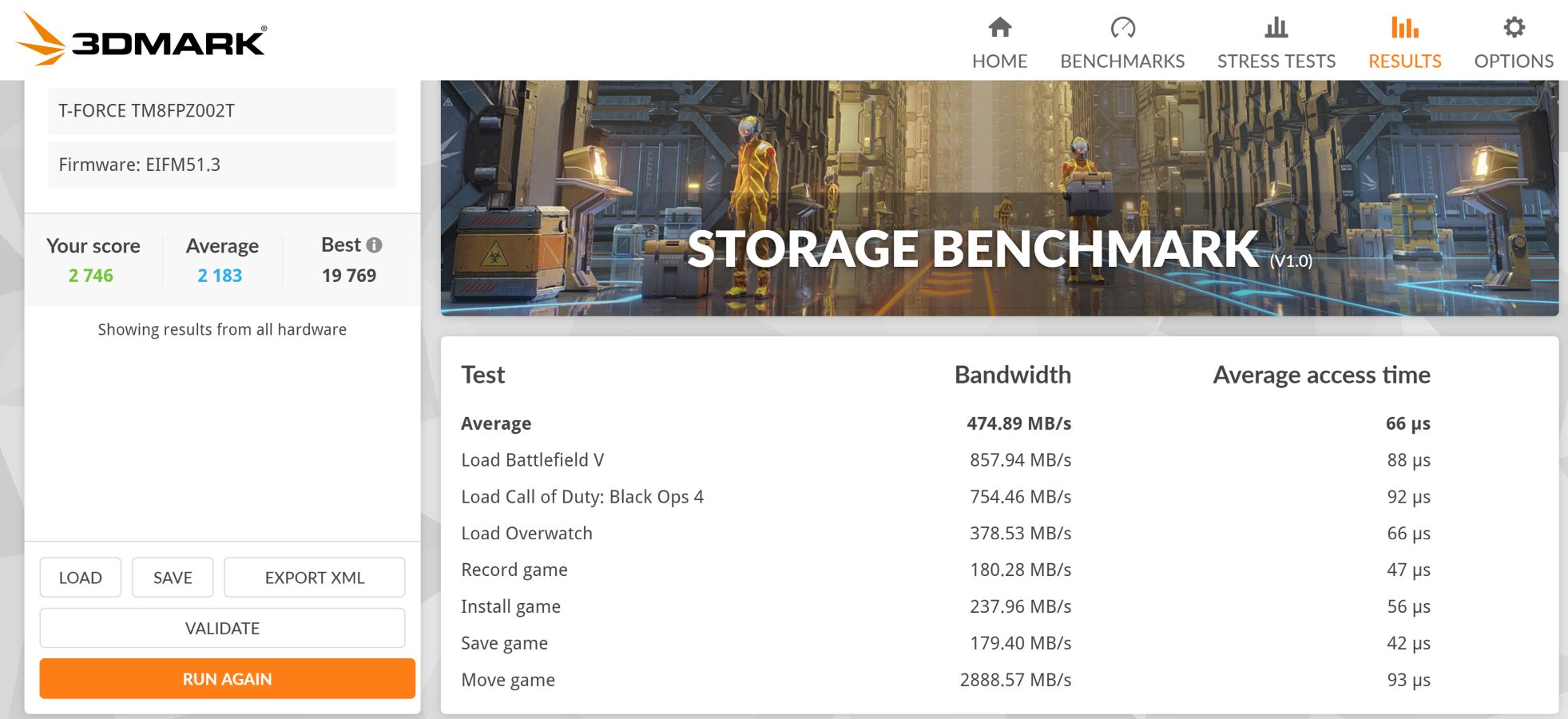 3DMark has a test for hard drives that pushes the drive with real world copies, a run of Overwatch, Call of Duty, and other games to test initial load times and transfer speeds to copy a game over. Just like in our other tests, it’s an amalgamation of tests using large and small files, showing how the drive performs with and without exhausted cache.