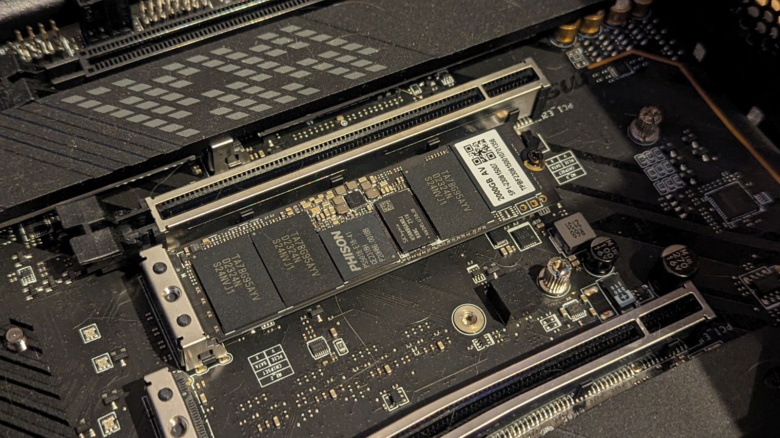 First things first, let’s get the tech specs on the table so we can see what’s under the hood. The TFORCE CARDEA A440 Pro M.2 NVMe is a PCIe Gen 4×4 NVMe drive, with a stated theoretical maximum of 7,400 MB/s read speeds, and 7,000 MB/s write speed. It follows a 2280 form factor, and at those speeds, should work wonderfully in a PC or a PlayStation 5 without issue. It carries with it two 1GB SKHynix DDR4-2666 CL19 for DRAM cache, 176 layer B47R Micron FortisFlash TLC NAND Flash, and uses a Phison E18 memory controller. We’ll get into the 200 GB SLC cache, and how it’s used in combination with the DRAM Cache to raise sustained write speeds when we get to measurements. The DRAM cache is also used for mapping tables (think of tables as the various “addresses” to the individual data bits that live on your drive), which you’ll see when we get to the random reads and writes tests in our review. Let’s load this in a PlayStation 5 first.