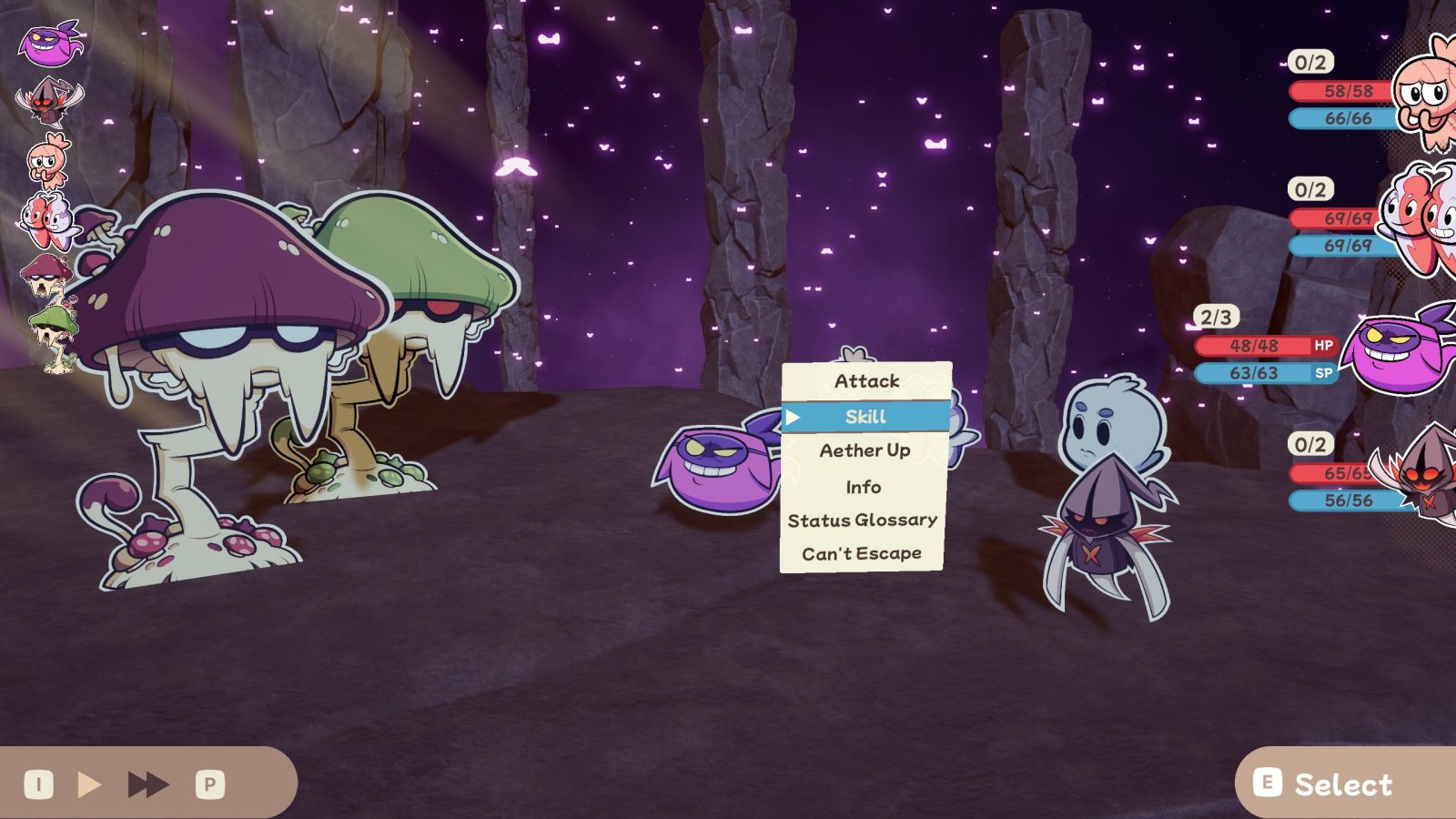 Instead of fighting yourself, you control aspects of your emotions called Figments which each have their own abilities. You begin with just one, Regret (which could be a genuinely great piece of gameplay storytelling if the game did anything with it), but acquire more through the story and by finding some on gravestones and defeating them. Battles are turn based, with the turn order displayed vertically on the left side of the screen. The number of actions you can take per turn is determined by how much AP, or Aether Points, that particular figment has. You’ll only get one AP at most per turn, but you can defend to increase your AP essentially stocking turns for later. You spend AP by attacking or using skills. Normal attacks and offensive skills will prompt a timing minigame where you want to press A when the marker is in the green part of the meter, but wait too long and the green will disappear entirely. The orange section will still hit but do less damage, while the red section will have you miss entirely. Each attack has its own timing, but it’s pretty easy to consistently hit the green after a while.