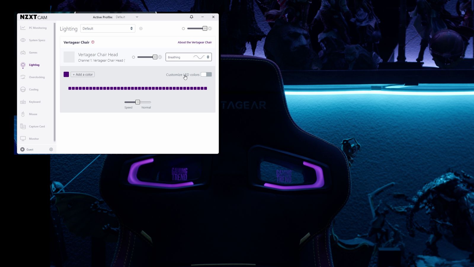 Inside the kit for the LED upgrades is a tool set for replacement and a small USB dongle. This dongle is placed in a PC or Mac where you can use NZXT’s CAM software to configure what sort of light pattern you’d prefer. There are many to choose from, as well as quite a few patterns you can enable. All of that is great…but it does mean you’ll need a PC available to adjust your lighting. This is the sort of thing that should be a Bluetooth app. In fact, NZXT used to have a CAM app for Android and iOS but has since abandoned it. It’d be great to be able to connect with Bluetooth to the chair to change things on the fly, rather than having to occupy a USB port and have CAM software running to do the same thing. This arrangement has been in place for some time – I think it’s time for Vertagear to cut the umbilical cord. Make your own app, folks – let me do this with my mobile device.