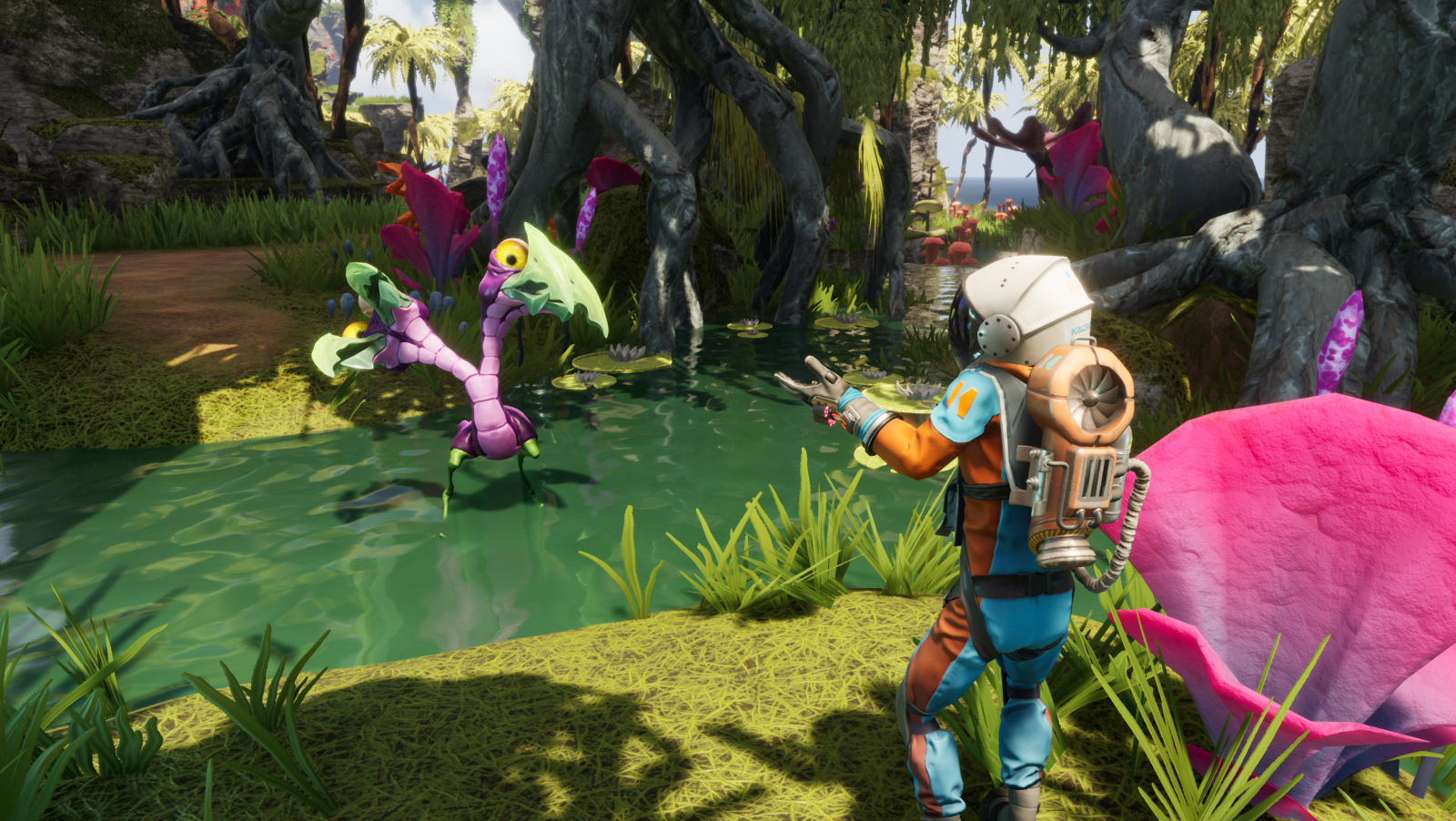 The flowers that give you health and ones that you use in combat and exploration are all the same. Even the critters found in the base game have returned, aside from a few new ones that don’t add much to the scenery. And with the ocean being part of the world that you can explore, you’ll find that it’s as barren as our Moon. There are no fish scuttling about the ocean floor and absolutely no threat of threatening shark-like creatures ready to maul you when you tread in the deep end. Which leads me to my main complaint about the base game: with the name of the game being Journey to the Savage Planet, there needs to be a sense of fear, and the new locales you travel to need to feel completely alien, but they don’t, and those shortcomings bleed their way into this new content.