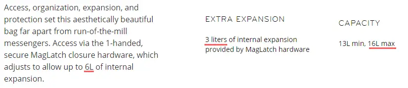 There are only a few things I have an issue with this bag, and one is about the bag’s marketing. Does the lock design increase the bag’s volume by up to 6L? Or is it 3L? The website doesn’t confirm which is the right answer, but there’s only one choice and from my understanding it’s 3L. While that’s not an inconvenience for me (since I don’t even come close to filling this thing up), it is worth noting.