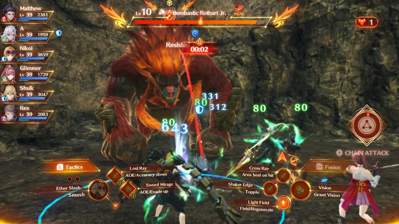 In lieu of interlinking, you can pair characters up for Unity attacks. These serve as the finisher for your Driver Combo after you break, topple, and launch an enemy (Daze has been removed). A Unity attack can have different effects depending on who you pair together, and not just in the final effect of bursting, smashing, or knocking back the enemy. For example, Rex and Glimmer together will give the party a critical hit buff, while Matthew and Shulk’s attack starts with 70% charge instead of having to build from scratch by canceling arts. It’s not quite as interesting as interlinking, but it’s not overpowered either and serves moreso to compliment the rest of the battle system rather than a get out of jail free card.