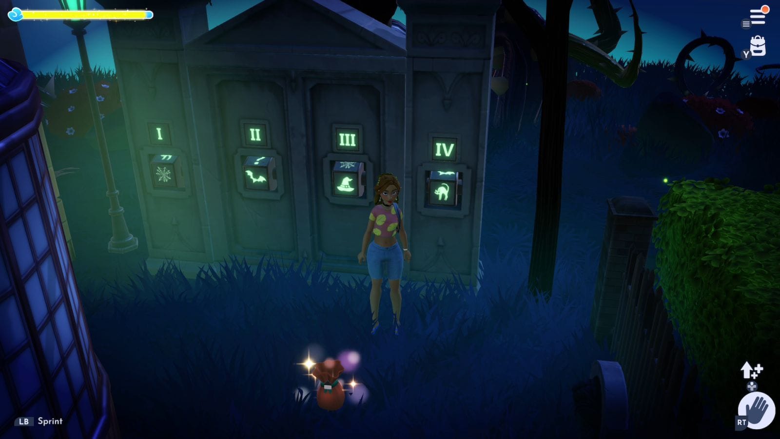 Once you have everything, interact with the spooky tree and put everything inside. Once you do that, you should get a bag containing the tree as a decoration item. Everything respawns, and you can leave and come back to continue your progress.