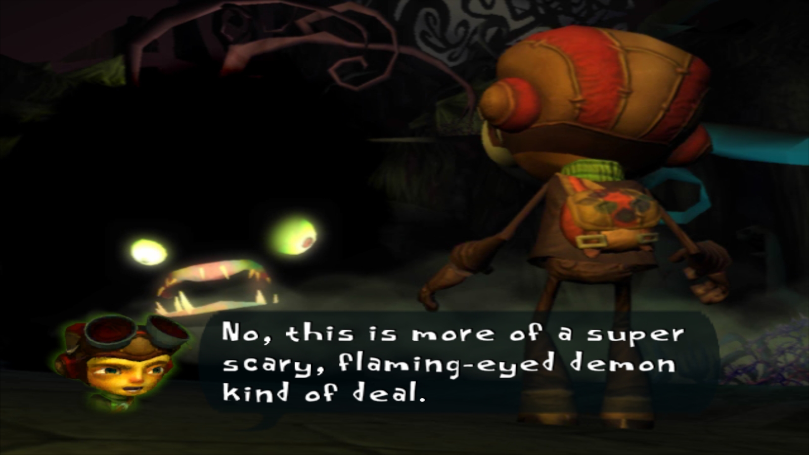 “The human mind… a three pound pile of dreams. The ultimate battlefield – the ultimate weapon. All wars of the psychic age are fought within these damp, curvaceous undulations. Paranormal paratroopers! Mental marines who are about to ship out on the adventure of their lives! This is our beachhead, and the brain is your landing craft. You shall engage the enemy in his own mentality–you shall chase his dreams, you shall fight his demons, you shall live his nightmares! And those of you who fight well, you will find yourselves on the path to becoming international secret agents– in other words… Psychonauts!