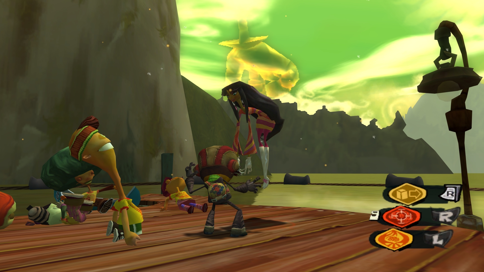 Despite her earlier protestations about Raz participating in camp activities, she quickly invites him to the psychedelic party in her mind with the other kids. This is another level focused on platforming, to a much greater extent than the Coach’s battlefield. The 60’s themed party is all about Levitation and the myriad of things the ability lets you do. Just like Marksmanship, it’s assigned to a button you choose and upon pressing it Raz hops on a psychic ball of energy. By rolling around the ball, you can move quite a bit faster, jump further and higher, and even float gently to the ground by holding LT in midair. This is by far my favorite ability in the game as it opens up many platforming possibilities and can even be used creatively to circumvent some obstacles. I also just like going fast.